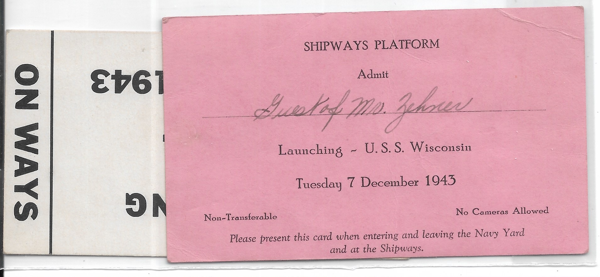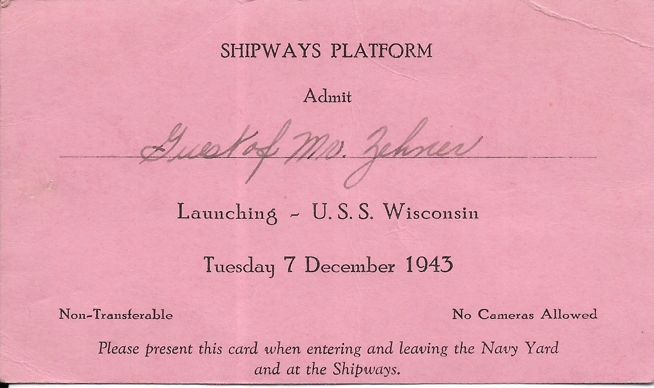 1943 USS Wisconsin BB-64, Launching Invitation. Added Sunday, October 12, 2025