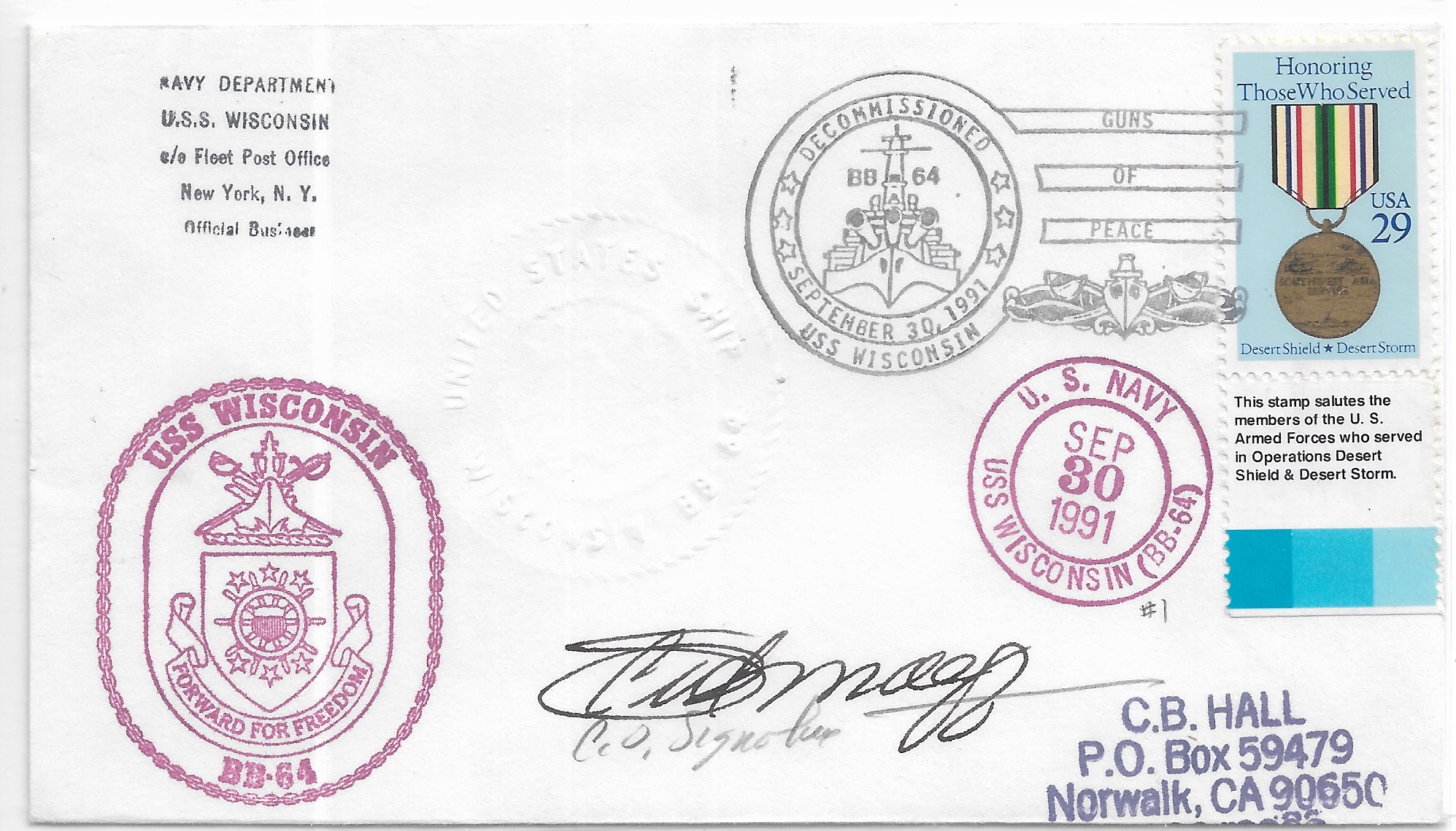 1991 USS Wisconsin BB-64 Decommissioned signed by C.O. Added Sunday, October 12, 2025