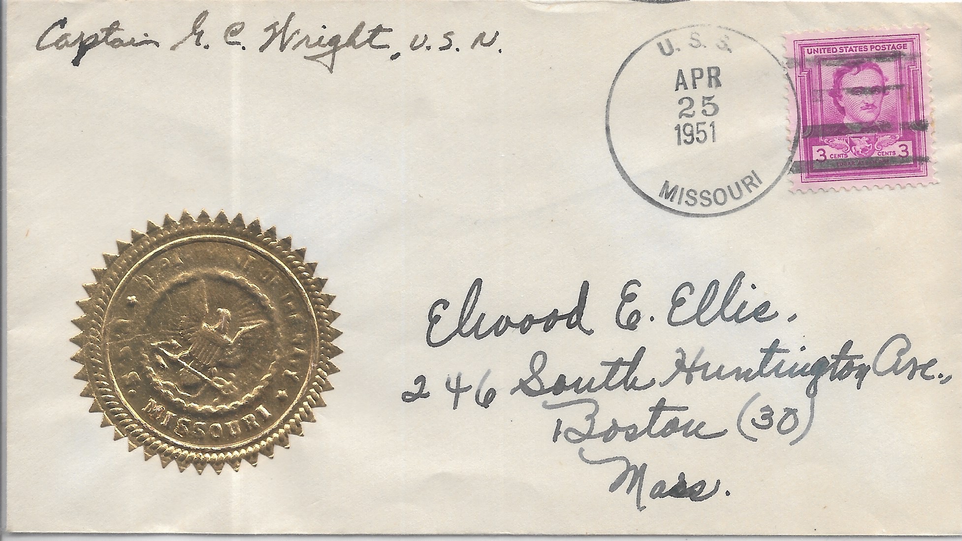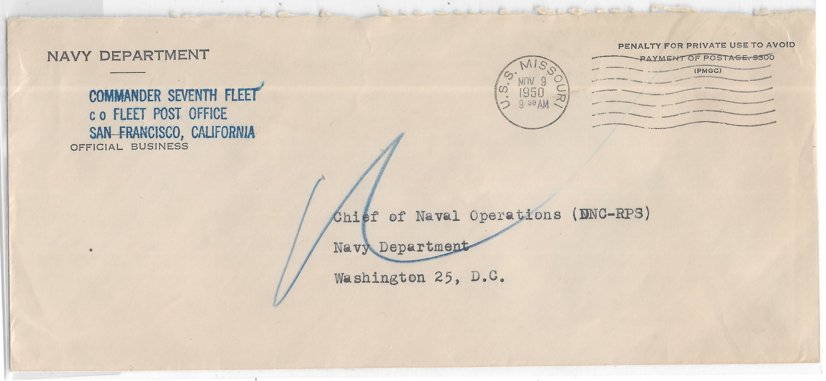 1951 USS Missouri BB-63 to Boston, Ma Signed by C.O. Added Sunday, October 12, 2025