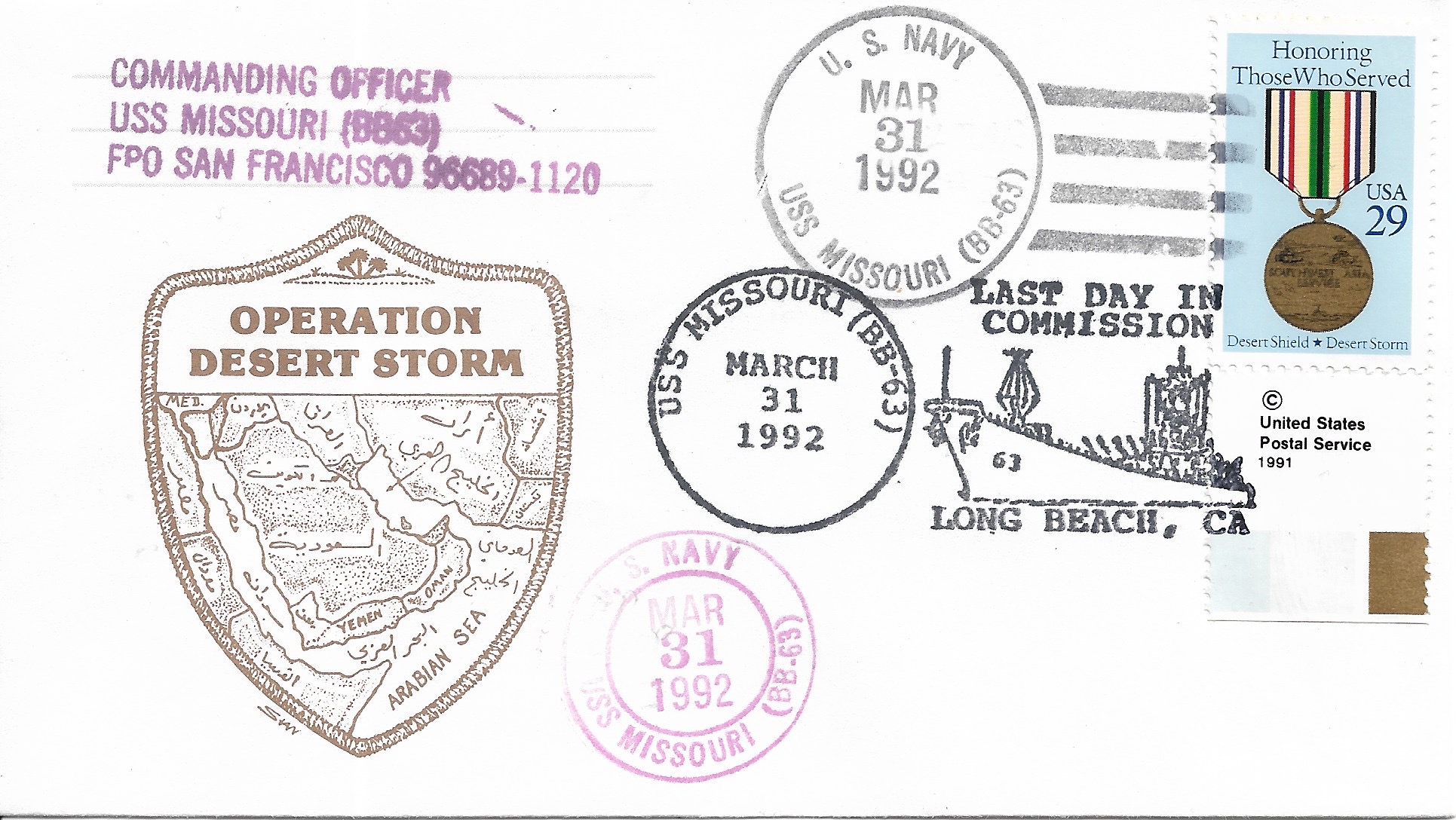 1990 USS Missouri BB-63, Operation Desert Shield signed by C.O. Added Sunday, October 12, 2025