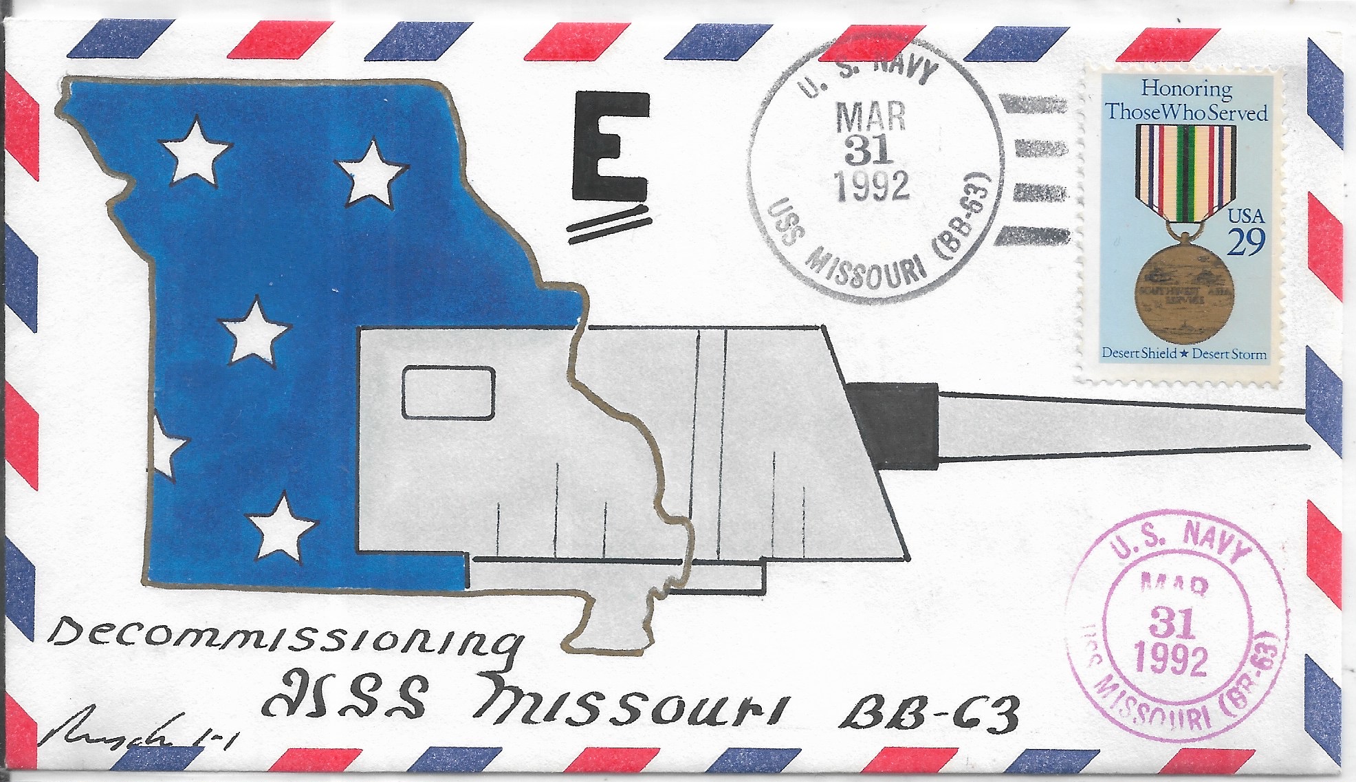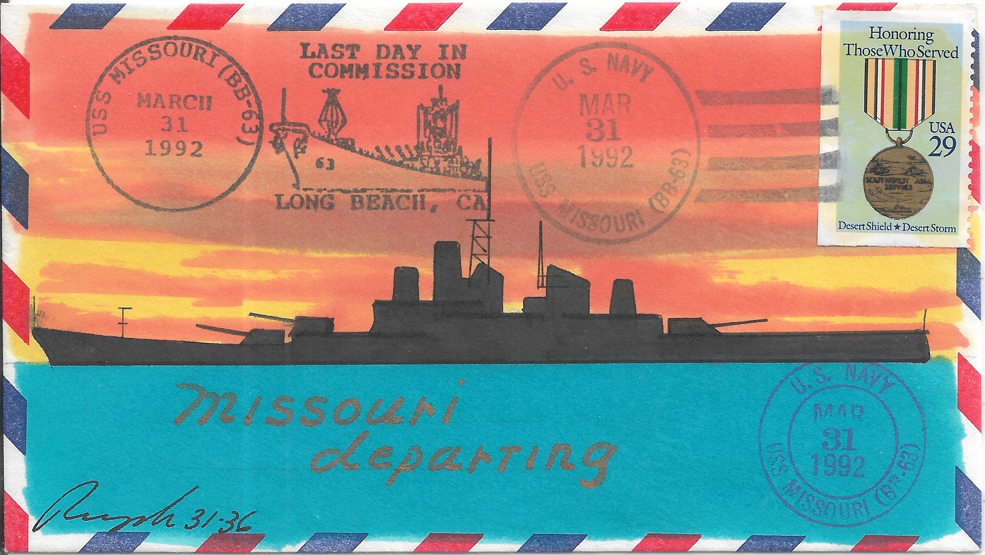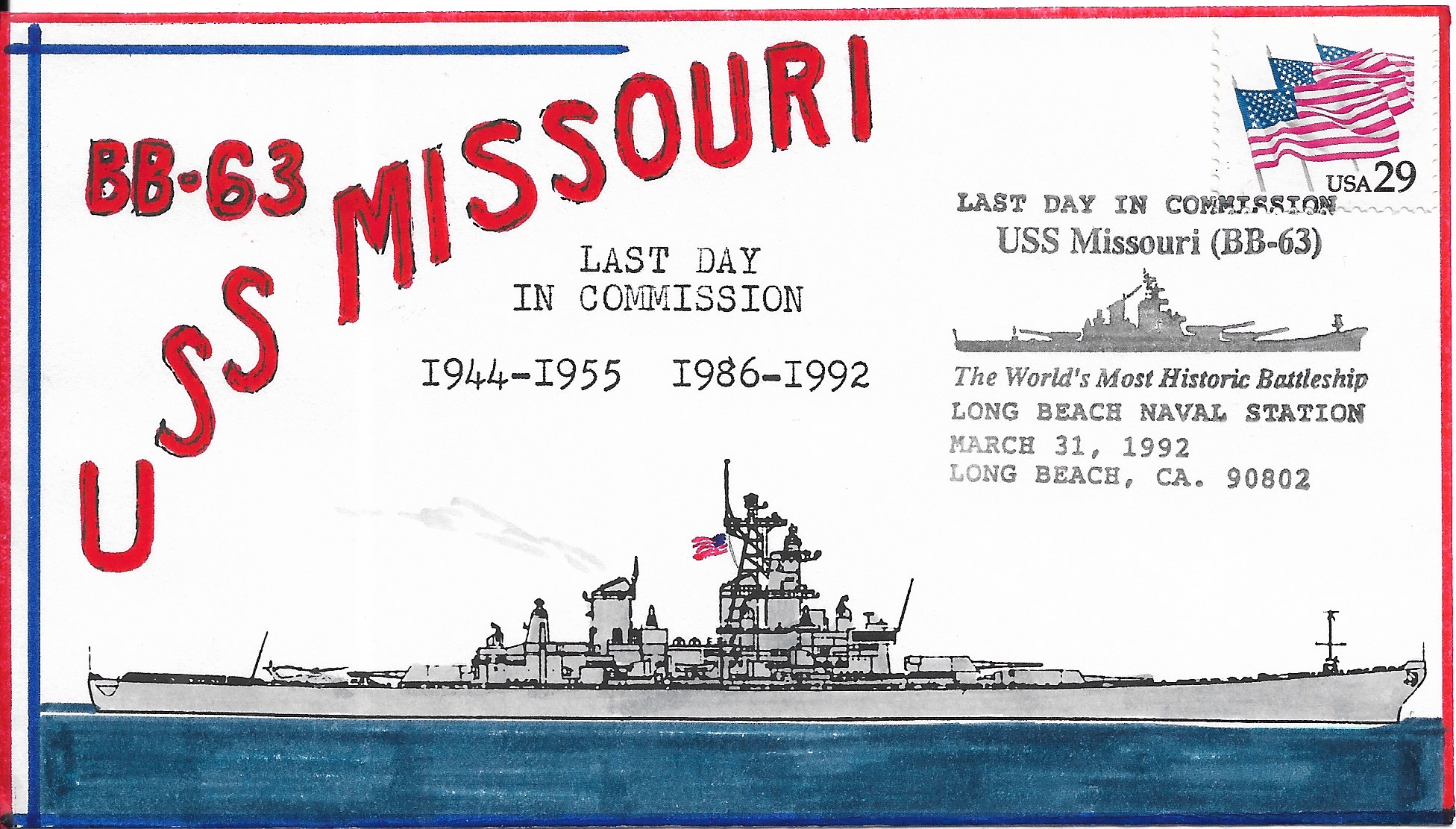 1992 USS Missouri BB-63, Last Day in Commission Hand Colored. Added Sunday, October 12, 2025