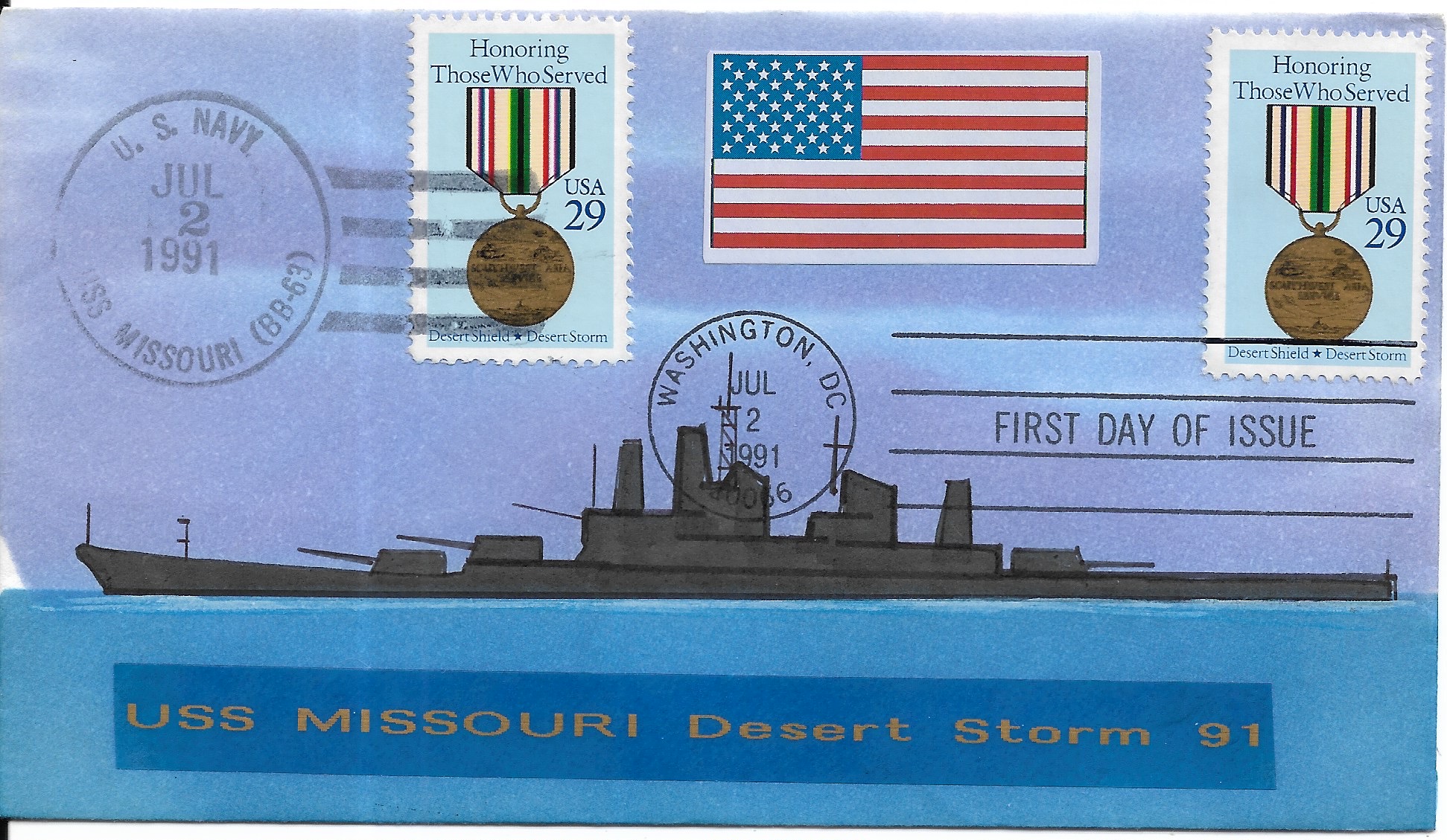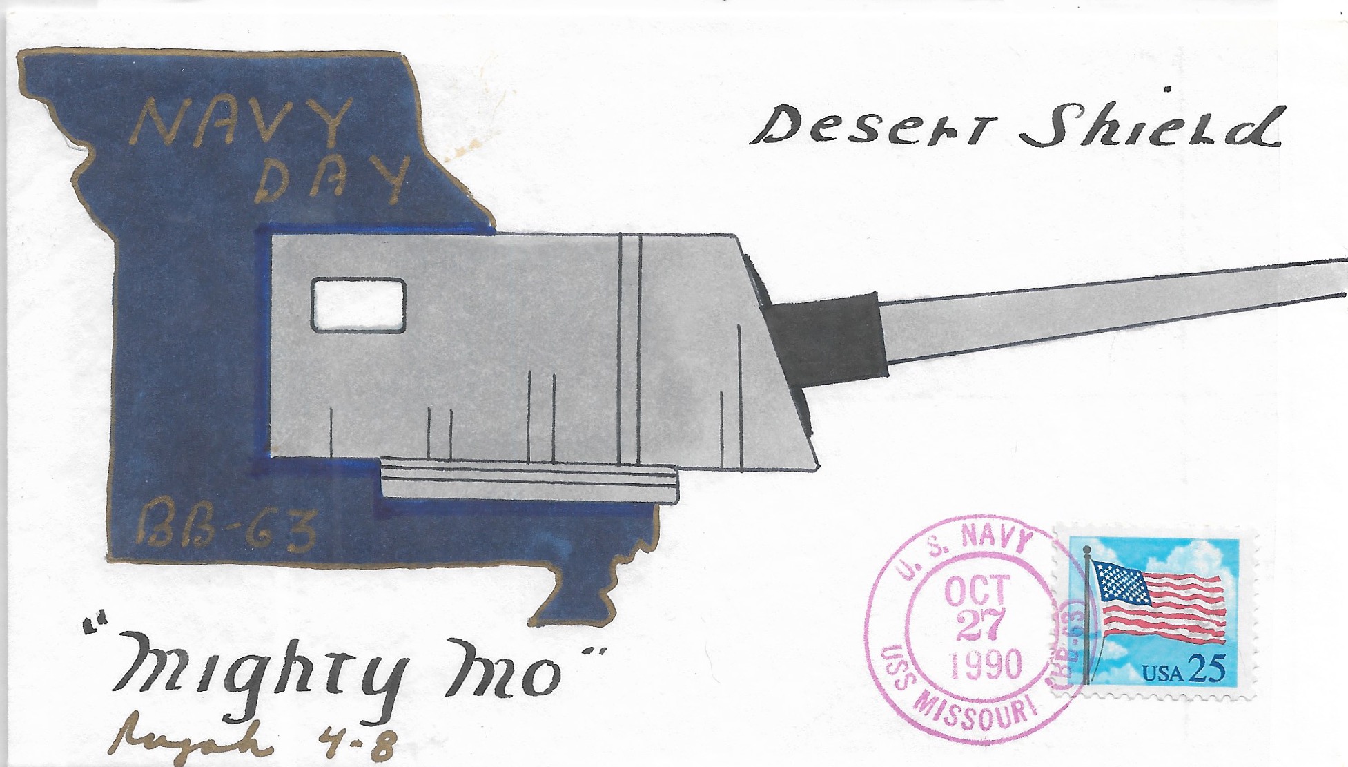1991 USS Missouri BB-63, Desert Shield Hand Colored. Added Sunday, October 12, 2025