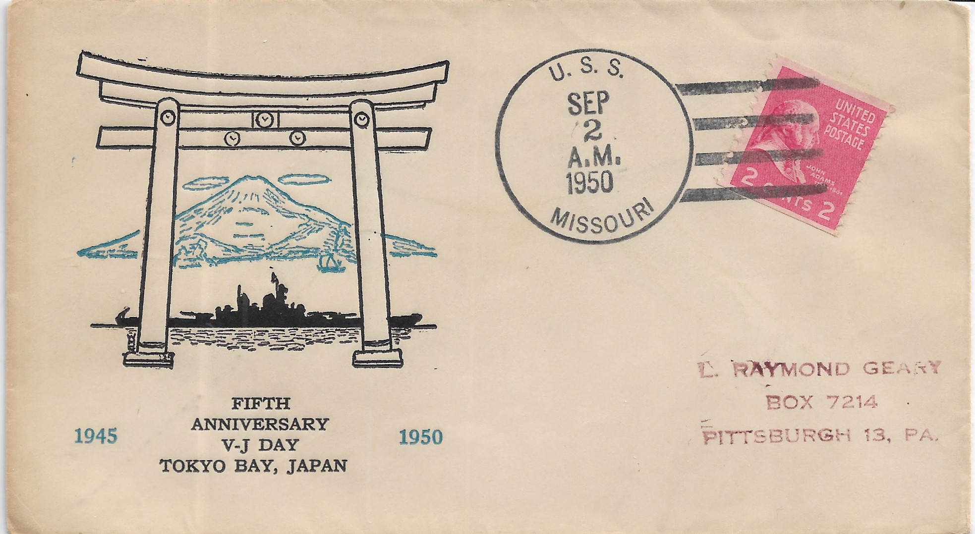 1950 USS Missouri BB-63, 5th Anniversary of VJ Day to Pittsburgh, Pa. Added Sunday, October 12, 2025