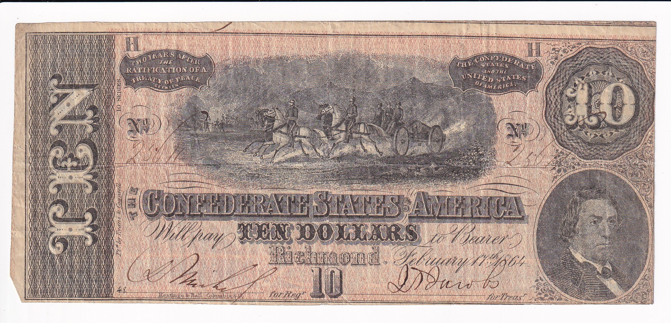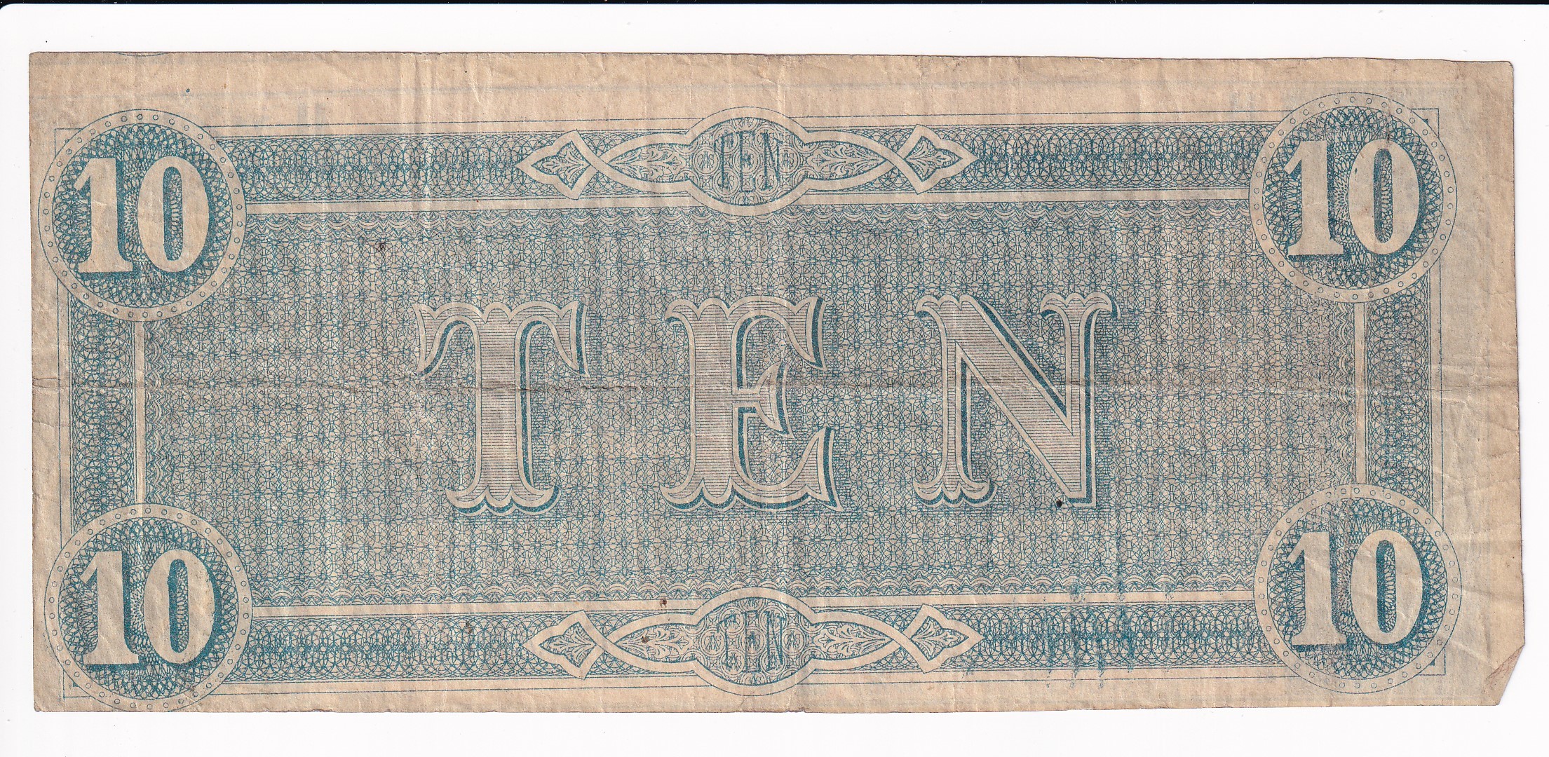 1864 $10 Confederate States Banknote, CS-68, VF. Added Sunday, December 28, 2025
