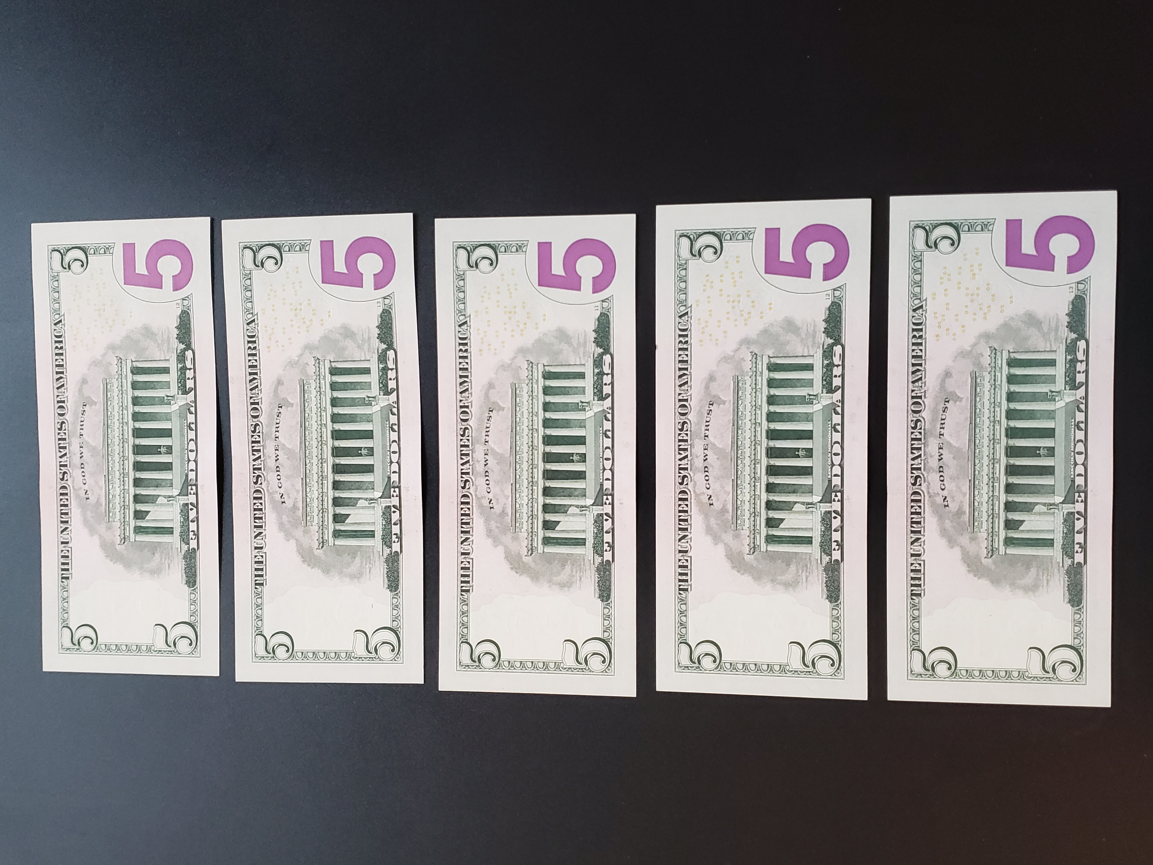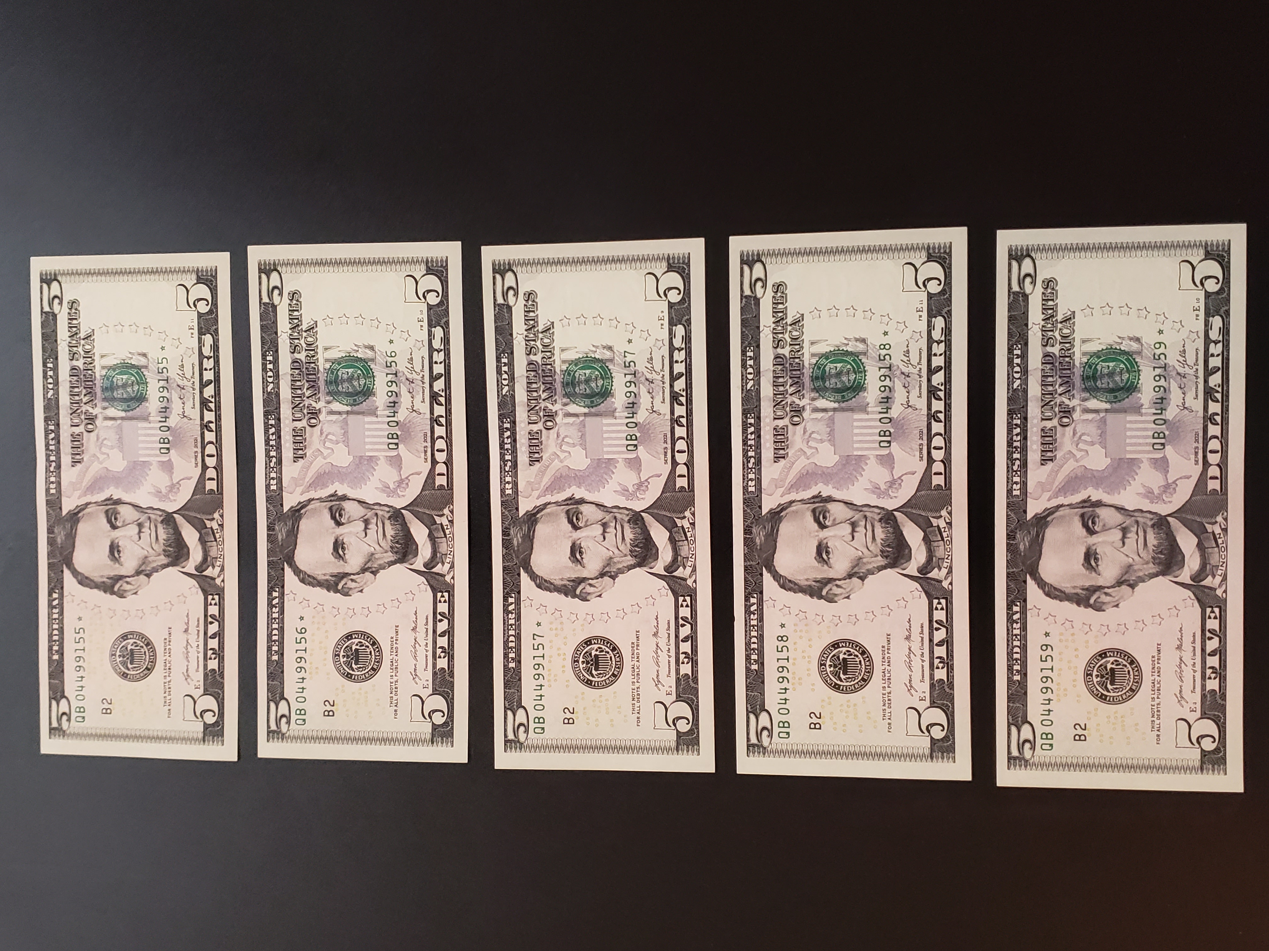 5 1999-B $5 Federal Reserve Star Note, Consecutive Numbers. Added Thursday, December 25, 2025
