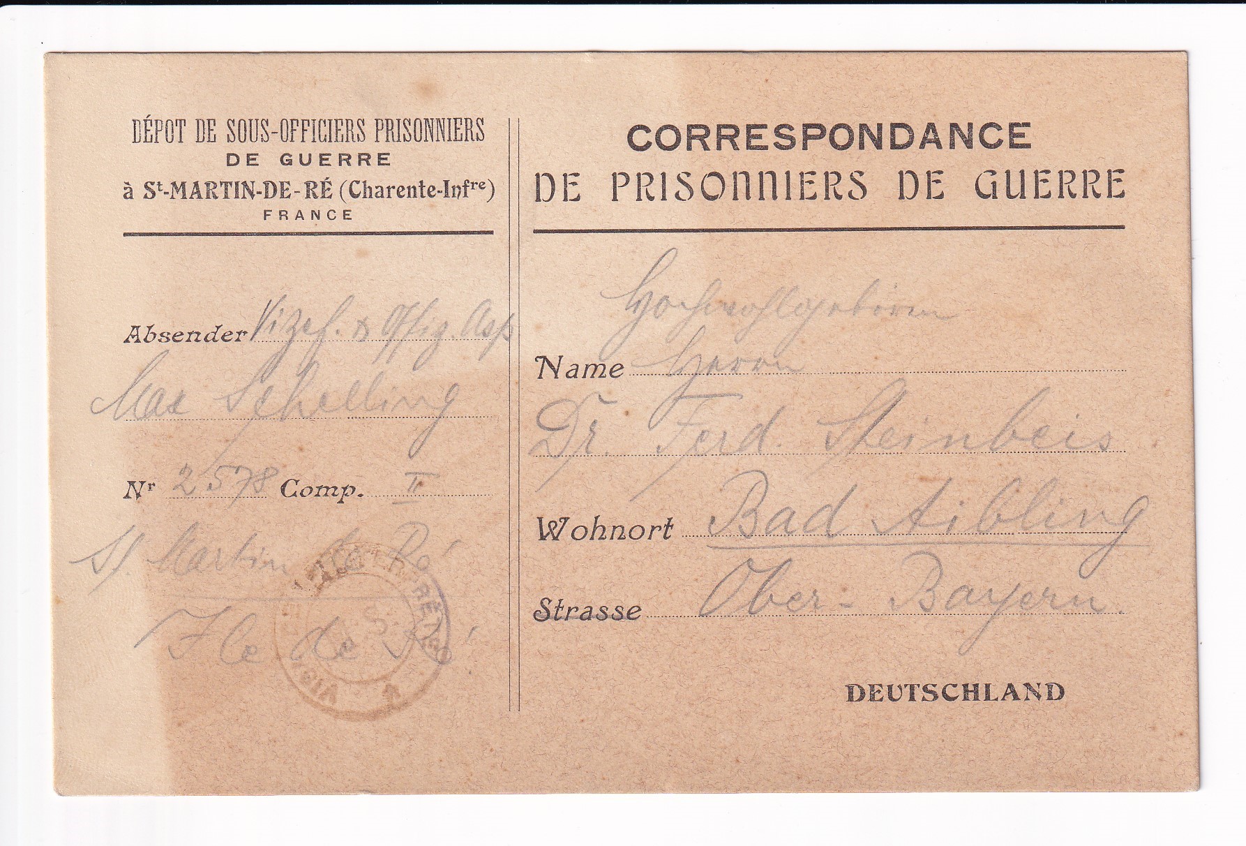 1918 German POW, St Martin-de-Re, France to Bad Aibling, Germany. Added Thursday, December 25, 2025