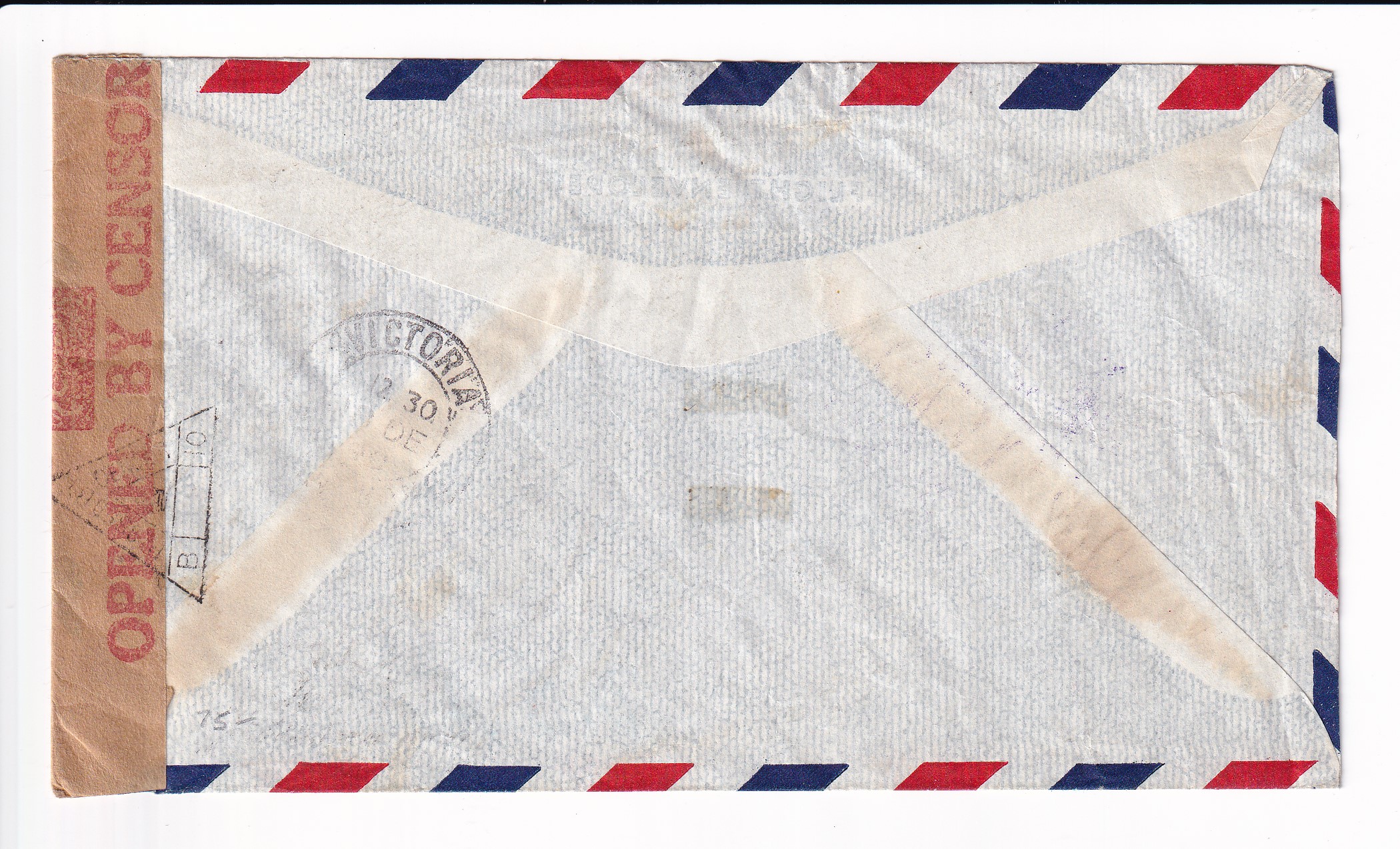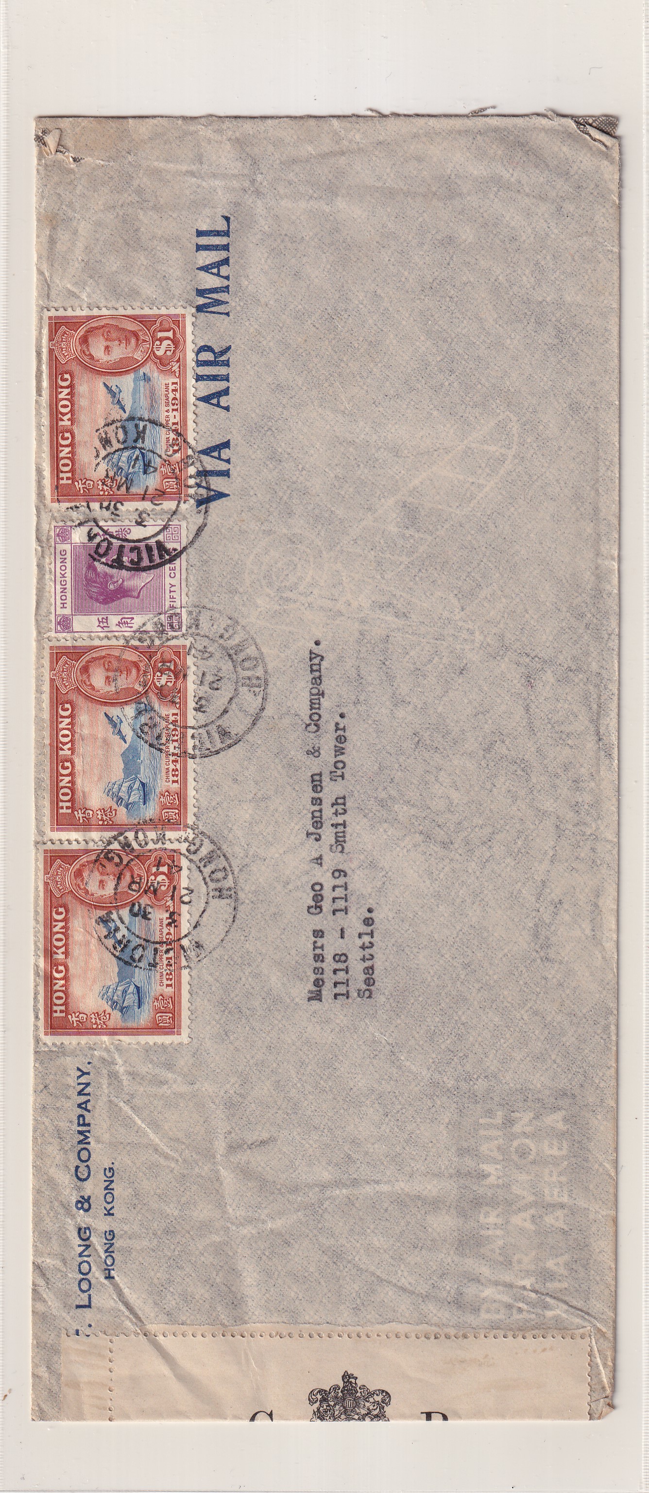 1941 Victoria, Hong Kong to Seattle, Wa Trans-Pacific Clipper, HK Censor Tape. Added Sunday, January 18, 2026