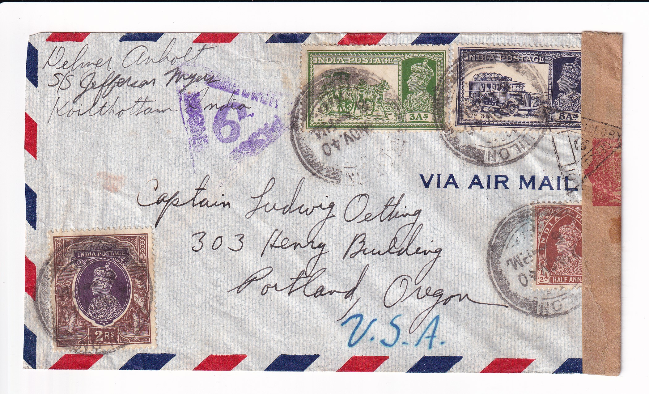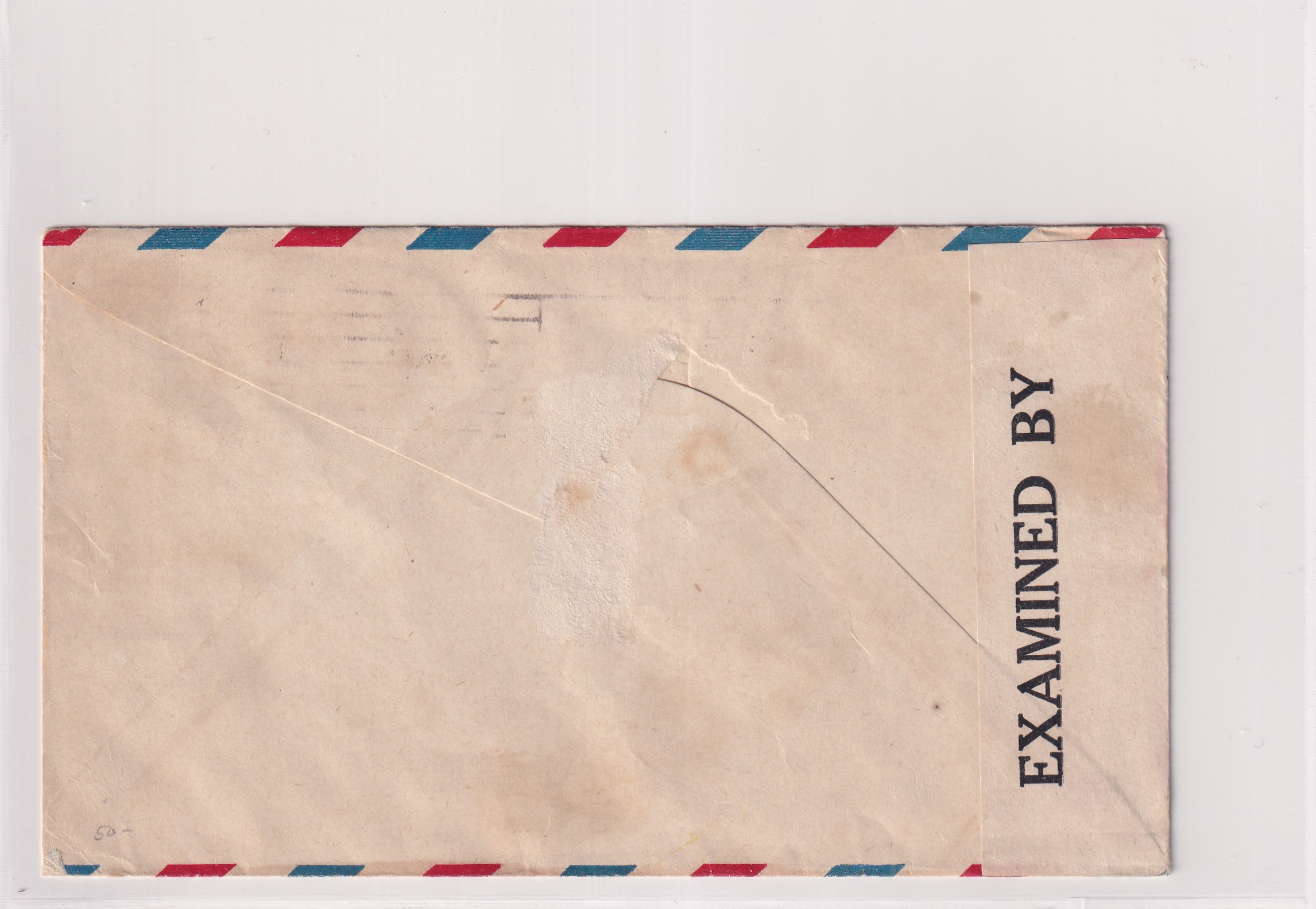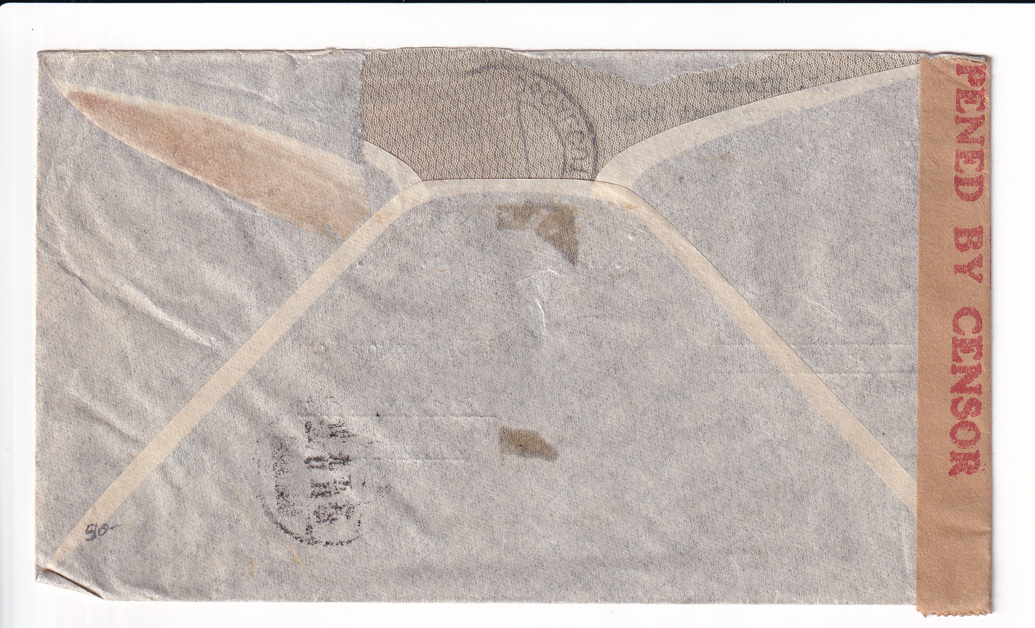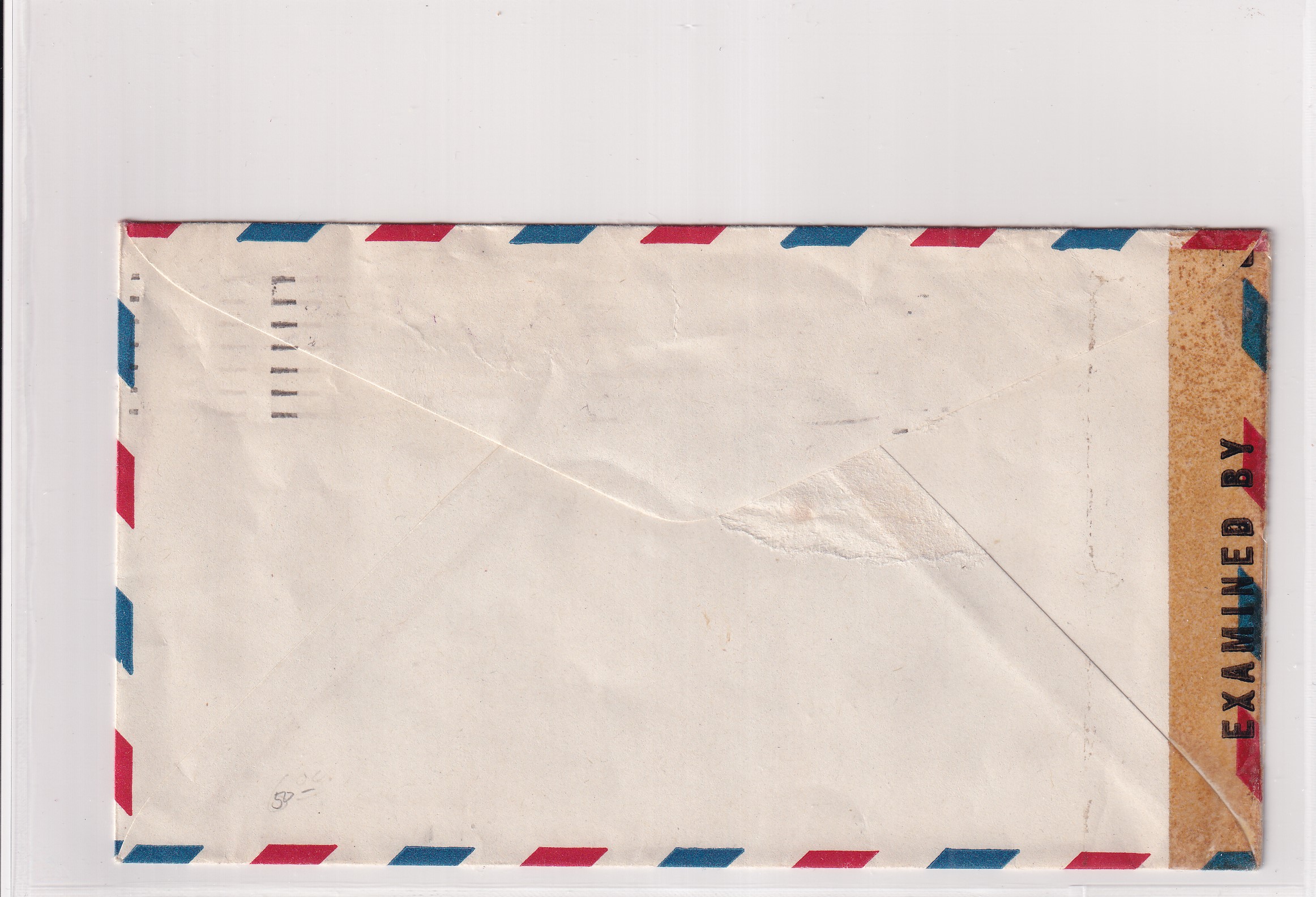 1940 India to Portland, Or Pacific Clipper Airmail, Censored. back stamped Hong Kong. Added Thursday, December 25, 2025