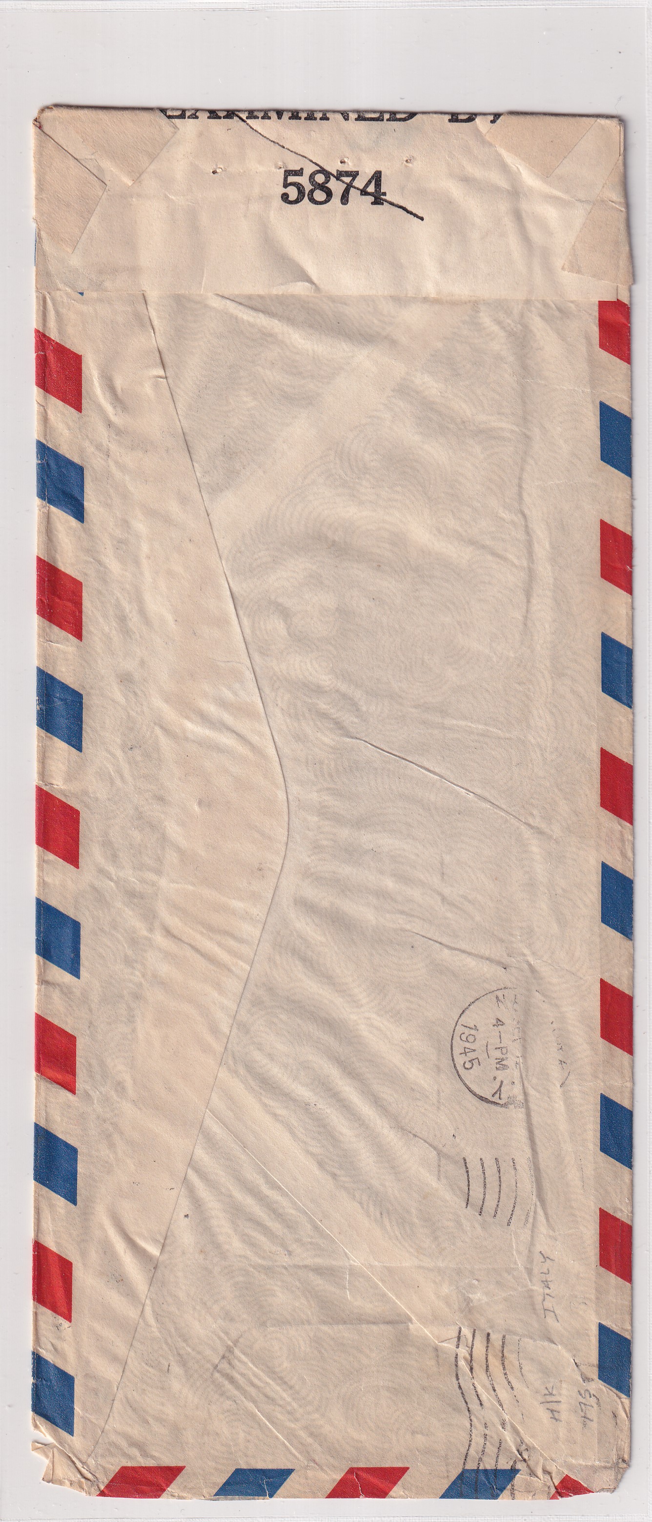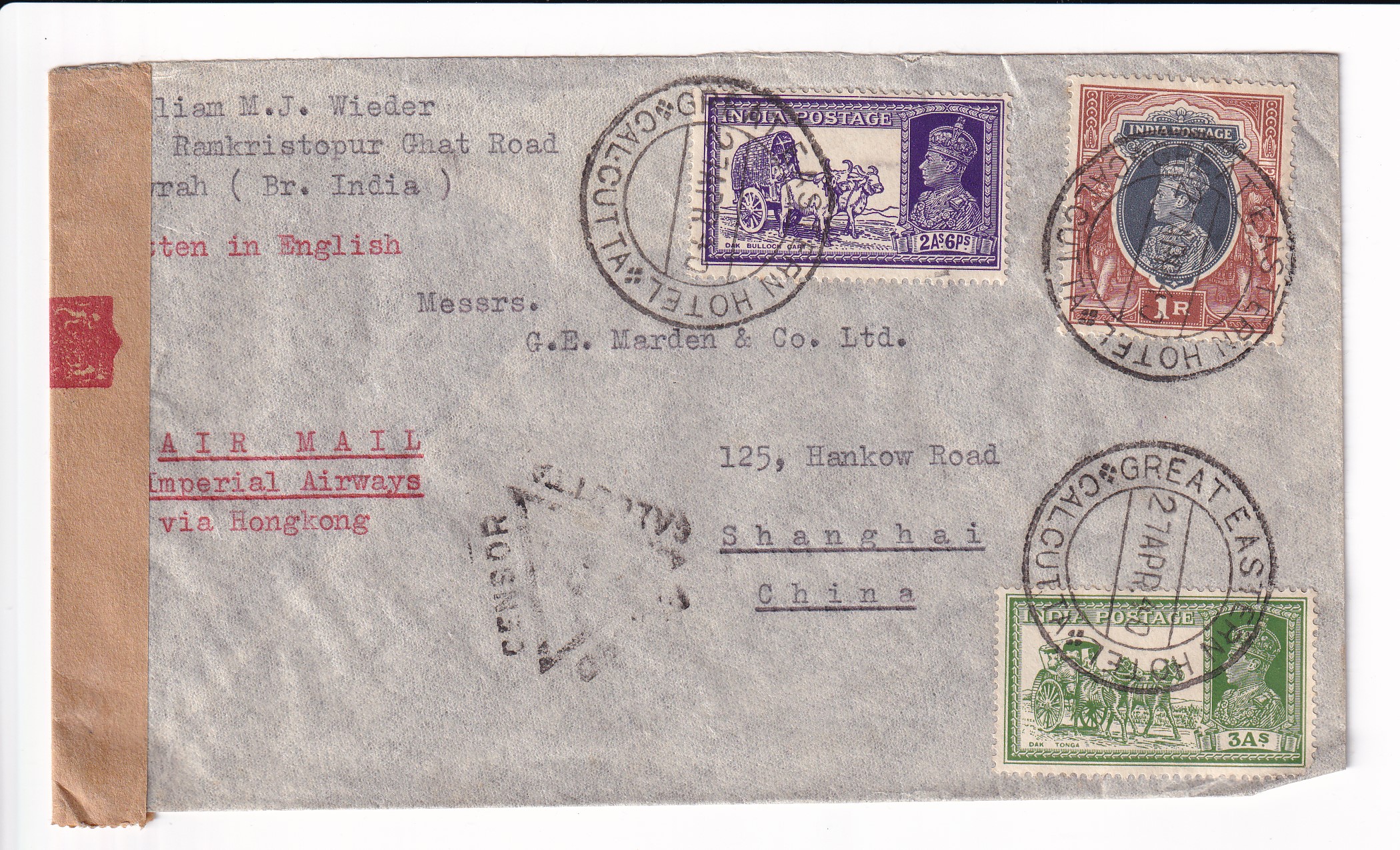 1940 Calcutta, India to Shanghai, China via Hong Kong Airmail, Censored. back stamped Shanghai, part of flap is missing. Added Thursday, December 25, 2025