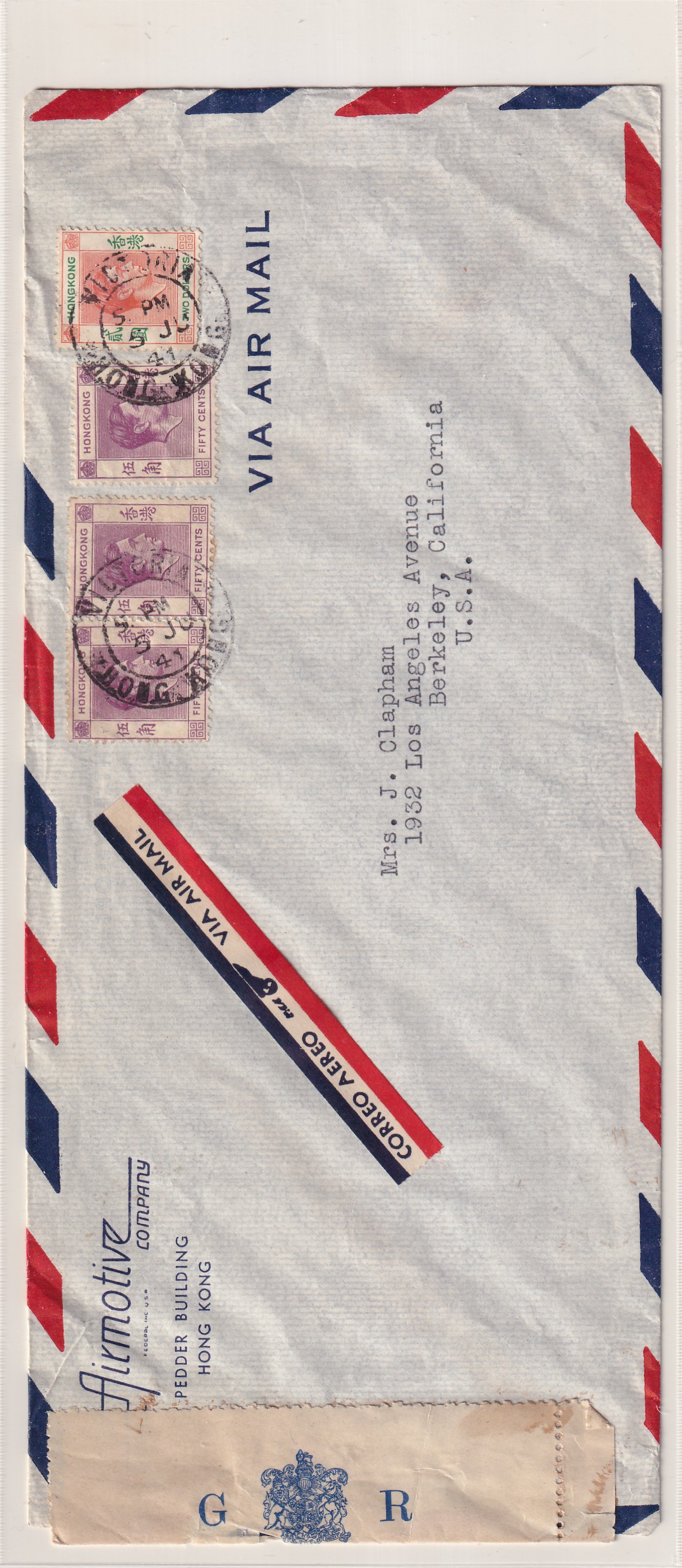 1941 Victoria, Hong Kong to Berkley, Ca Trans-Pacific Clipper, HK Censor Tape. Added Sunday, January 18, 2026