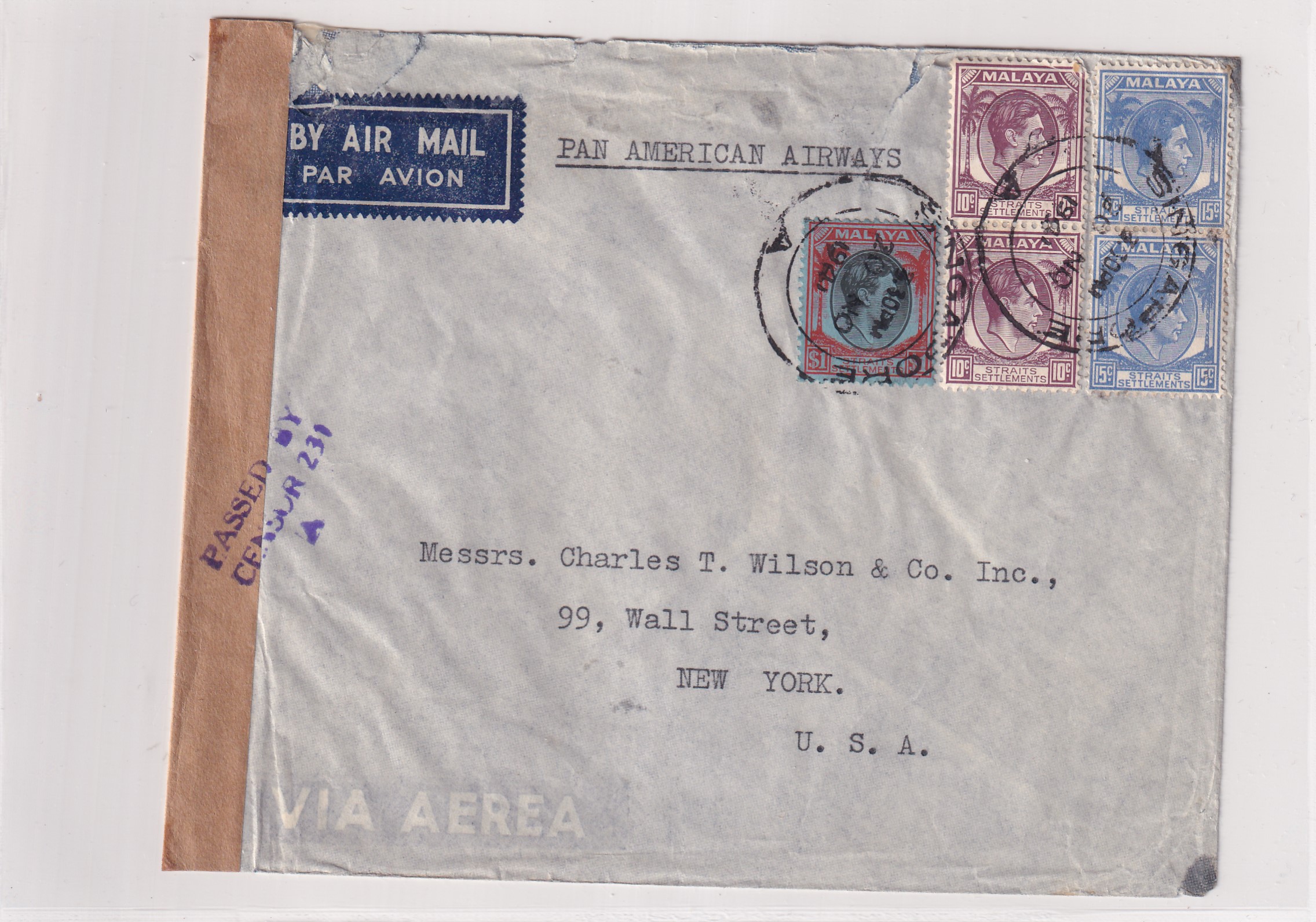 1941 Singapore to New York, NY Pacific Clipper Airmail Singapore Censor Tape & Handstamp. cover is torn. Added Sunday, January 18, 2026