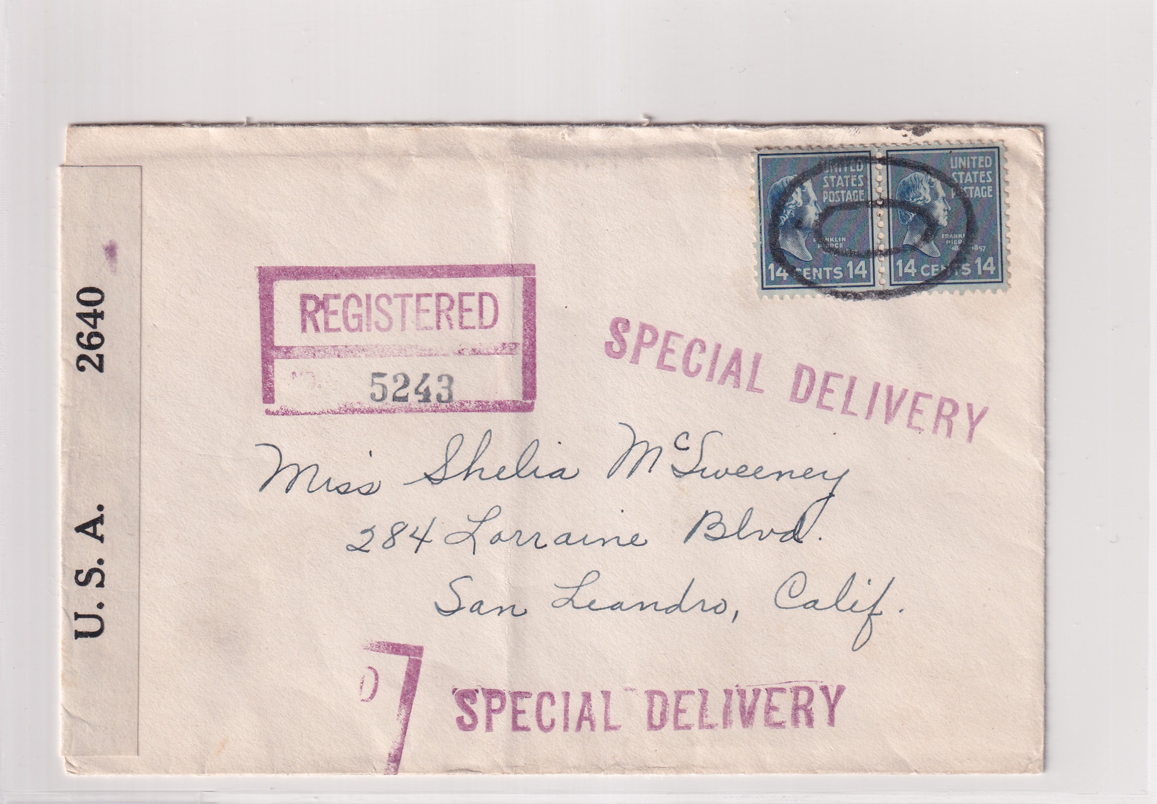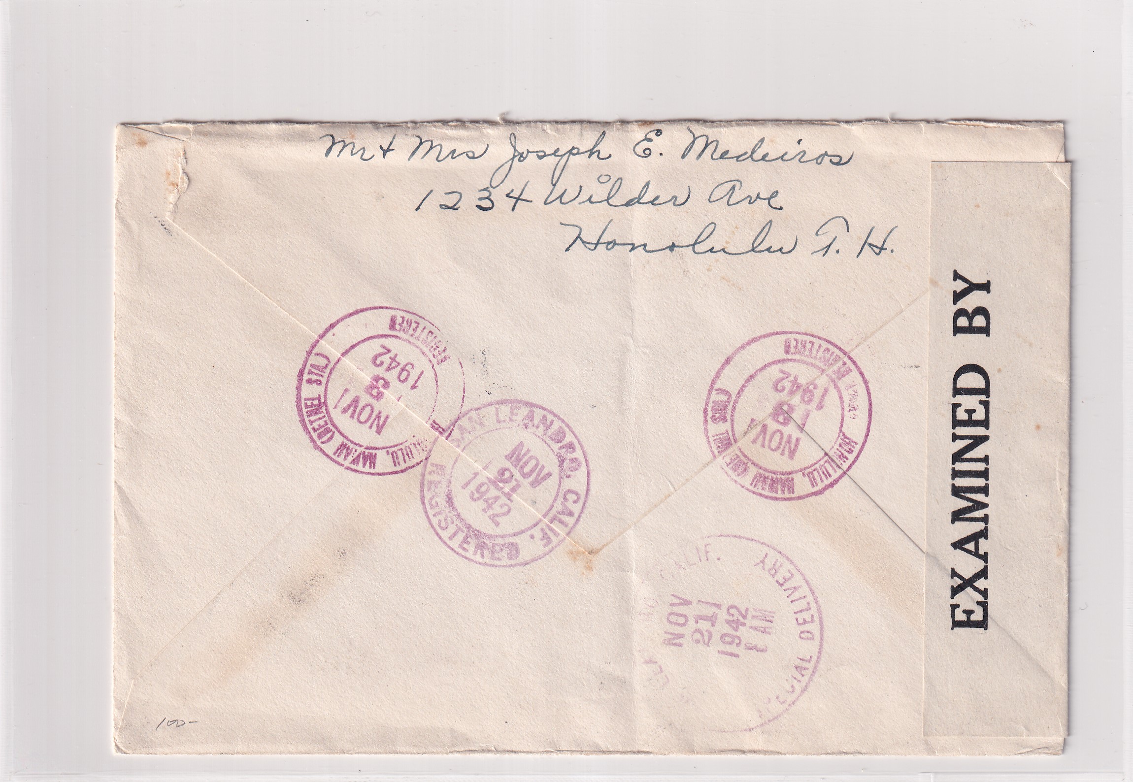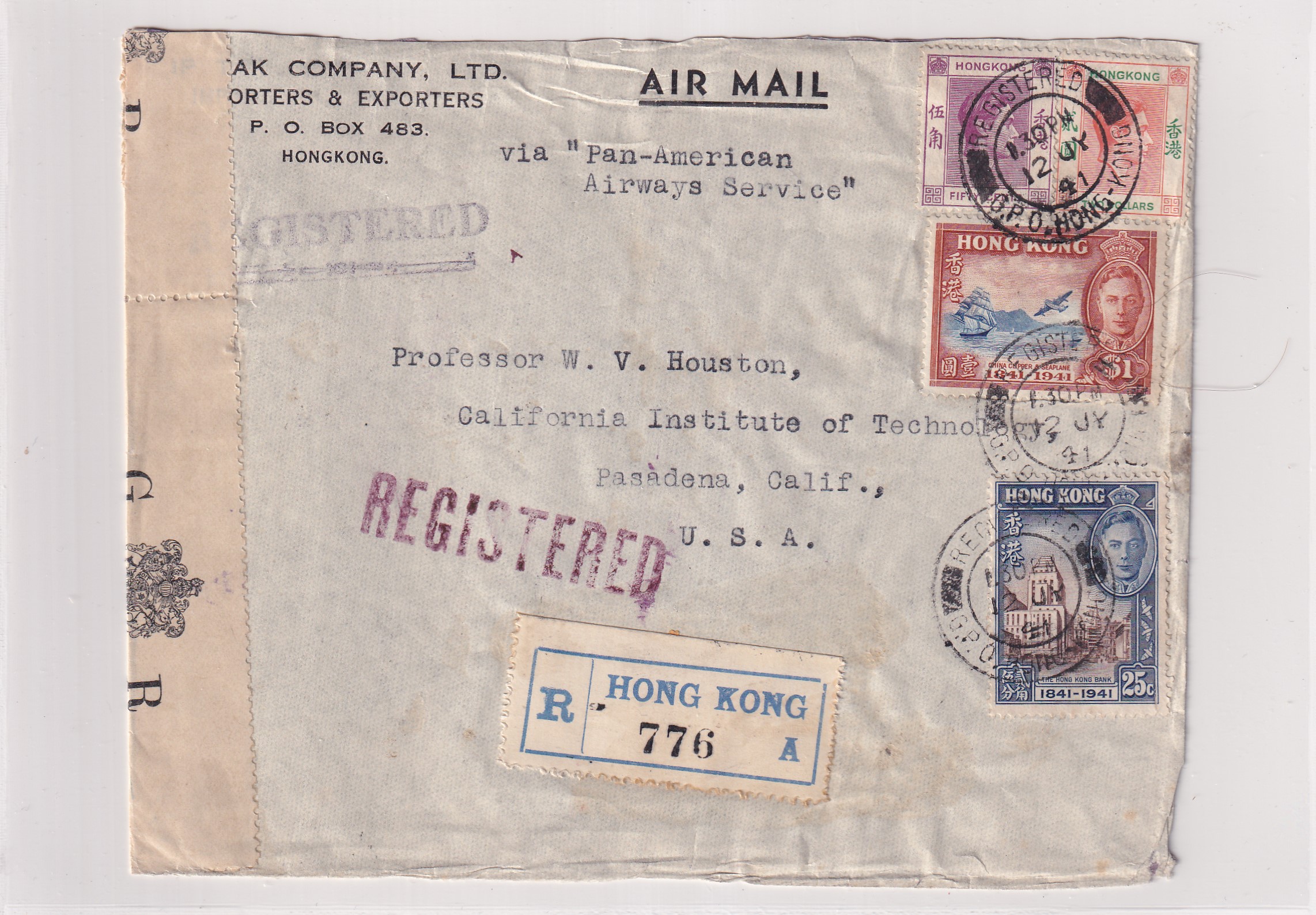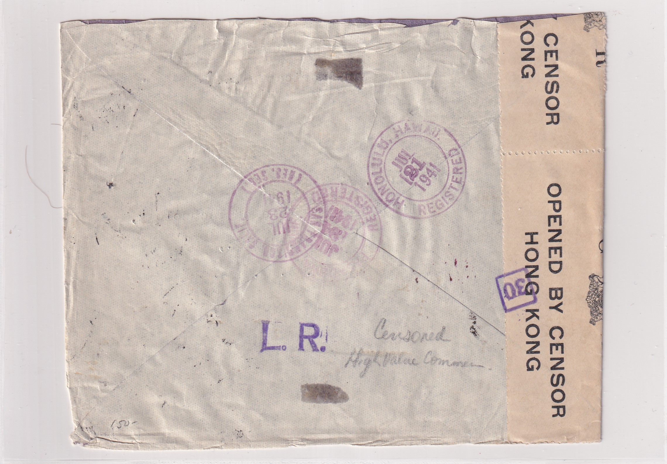 1941 Hong Kong to Pasadena, Ca Registered Trans-Pacific Clipper, HK Censor Tape. back stamped Honolulu, San Francisco & Pasadena. Added Sunday, January 18, 2026