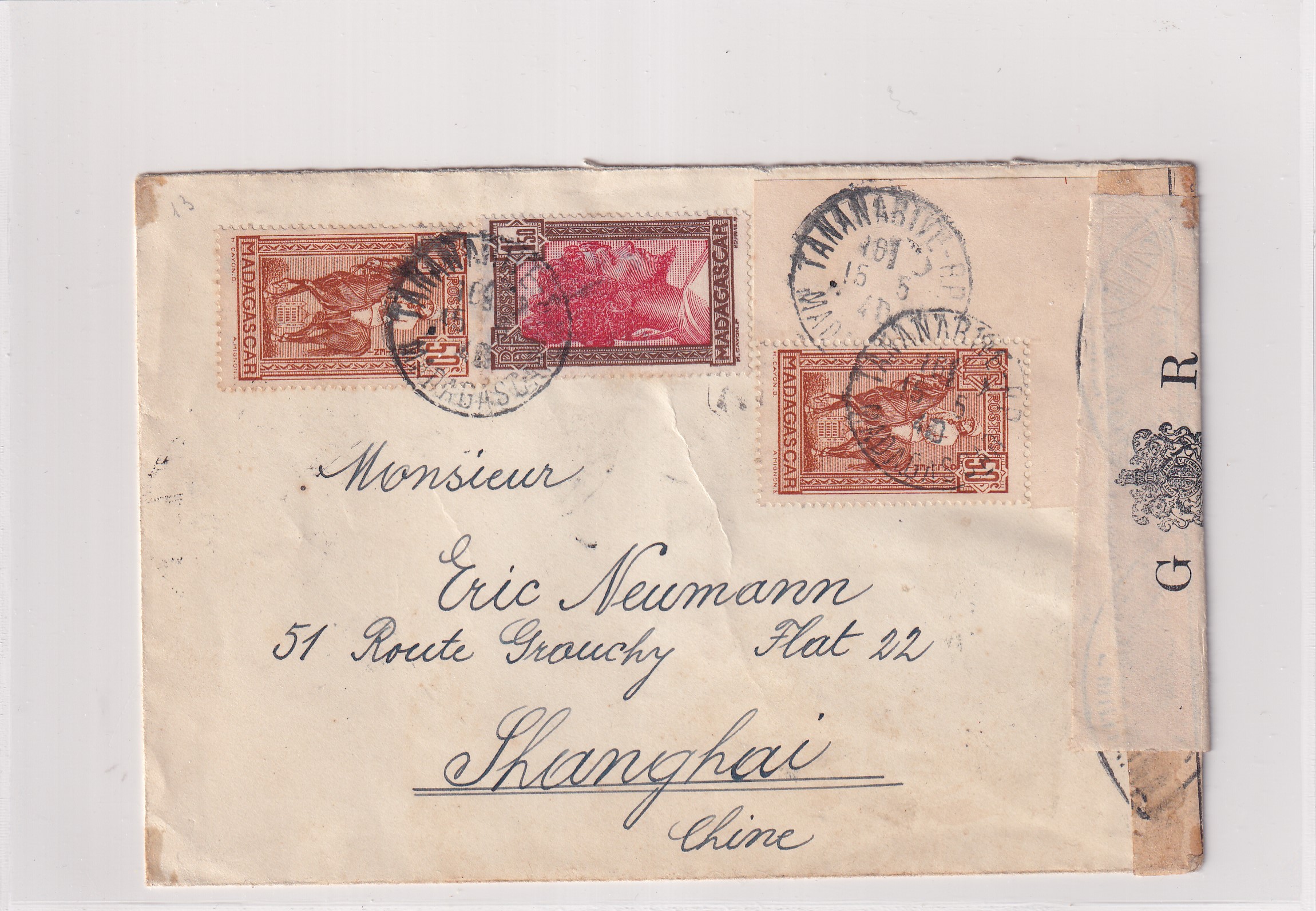 1940 Tananarive, Madagascar to Shanghai, China Madagascar & Hong Kong Censor Tapes. back stamped Tananarive. Added Sunday, January 18, 2026