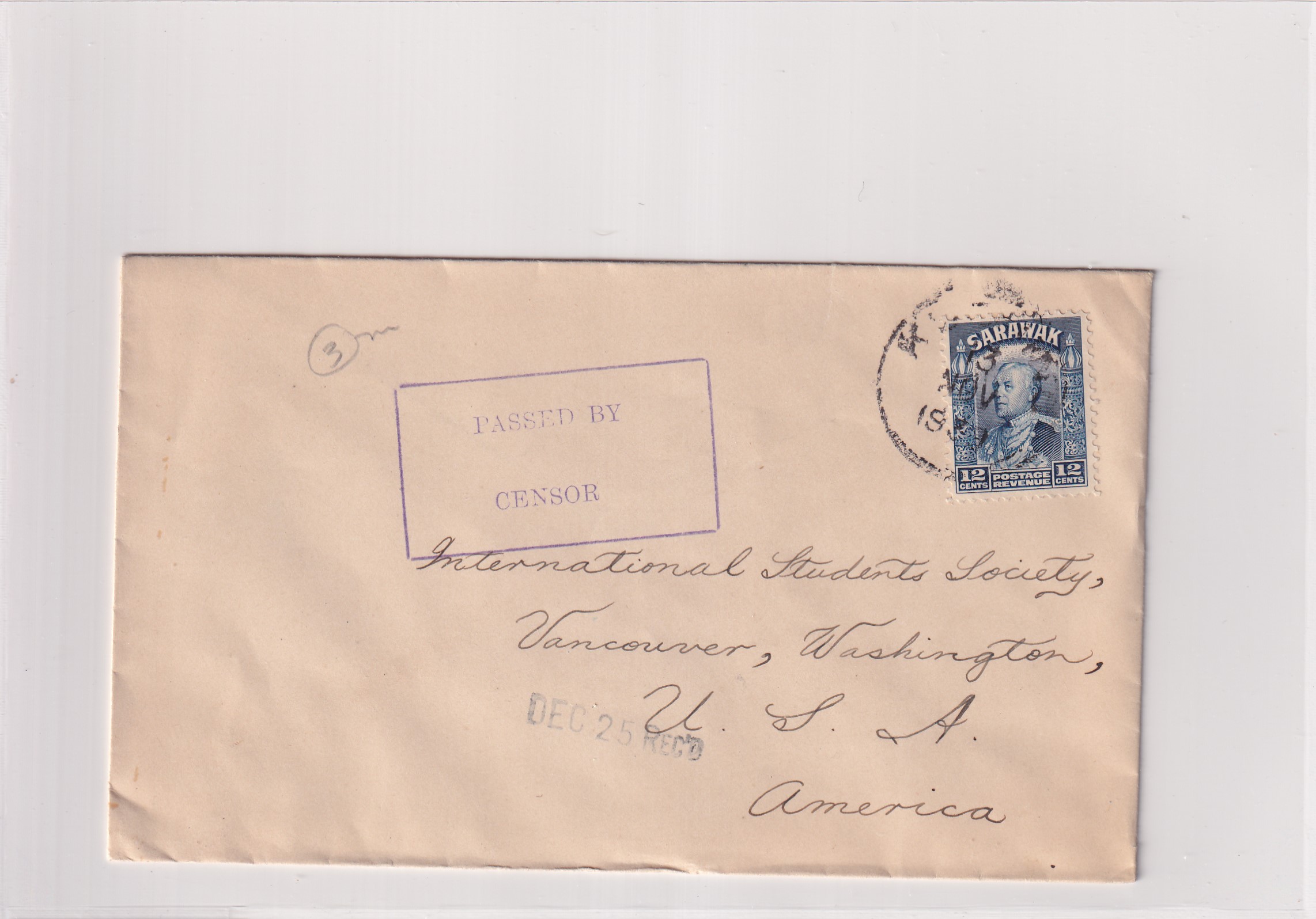 1939 Kuching, Sarawak to Vancouver, Wa. Sarawak Censor ty 1A, Sc 9. Added Sunday, January 18, 2026