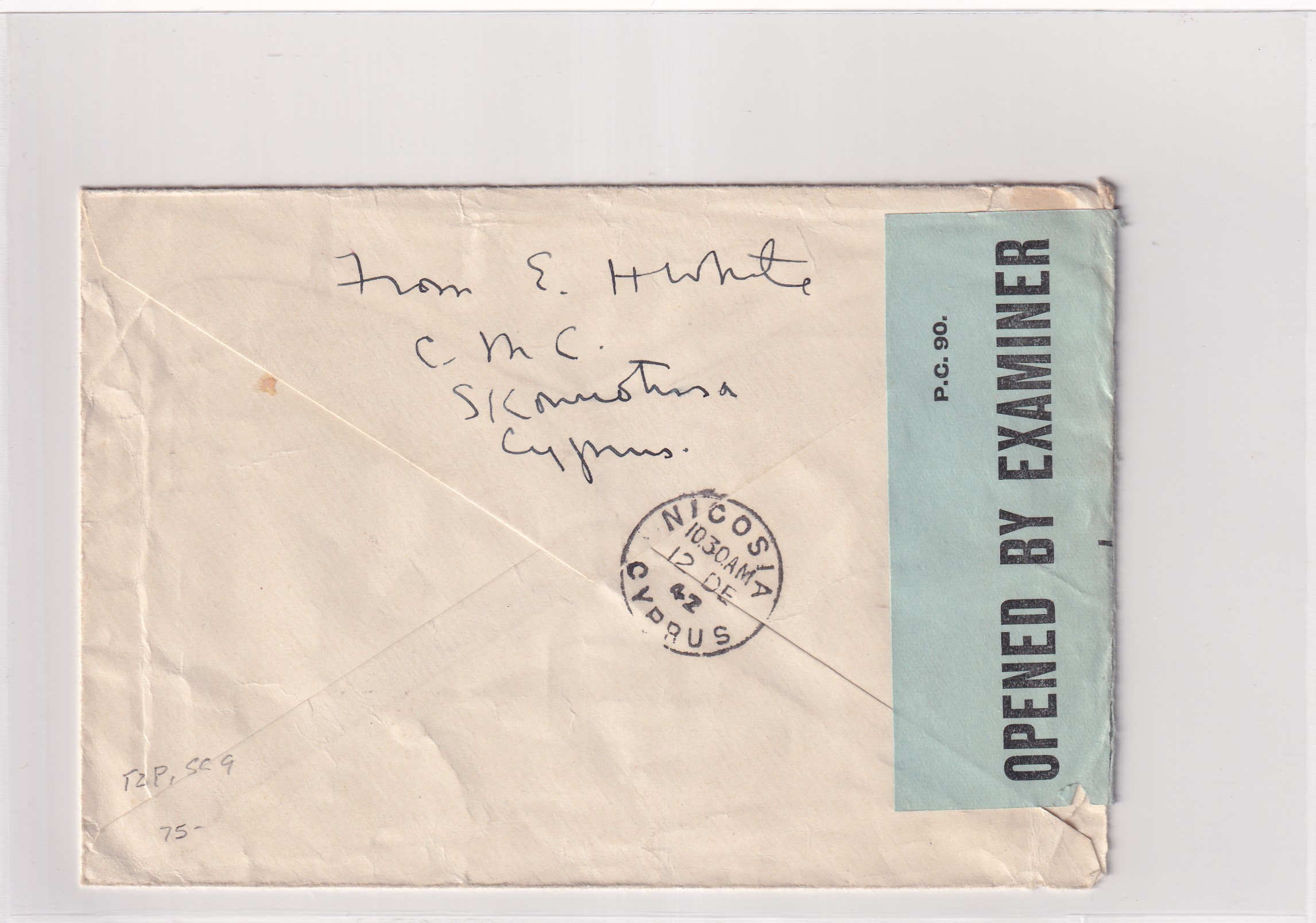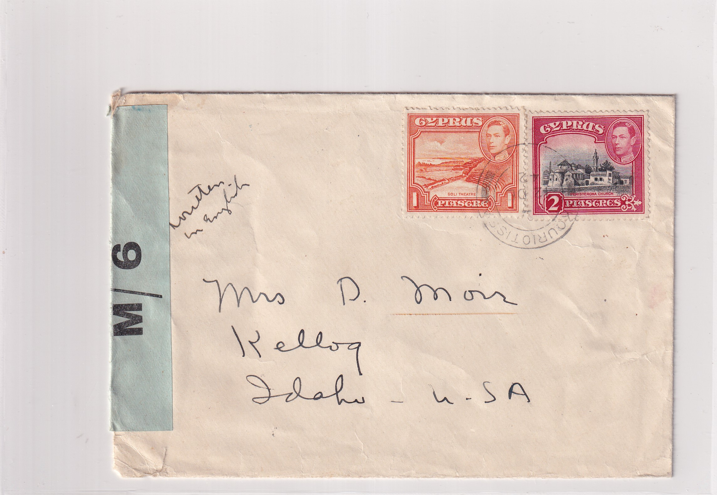 1942 Nicosia, Cyprus to Kellogg, ID Cyprus Censor ty T2p, Sc 9. back stamped Nicosia. Added Sunday, January 18, 2026