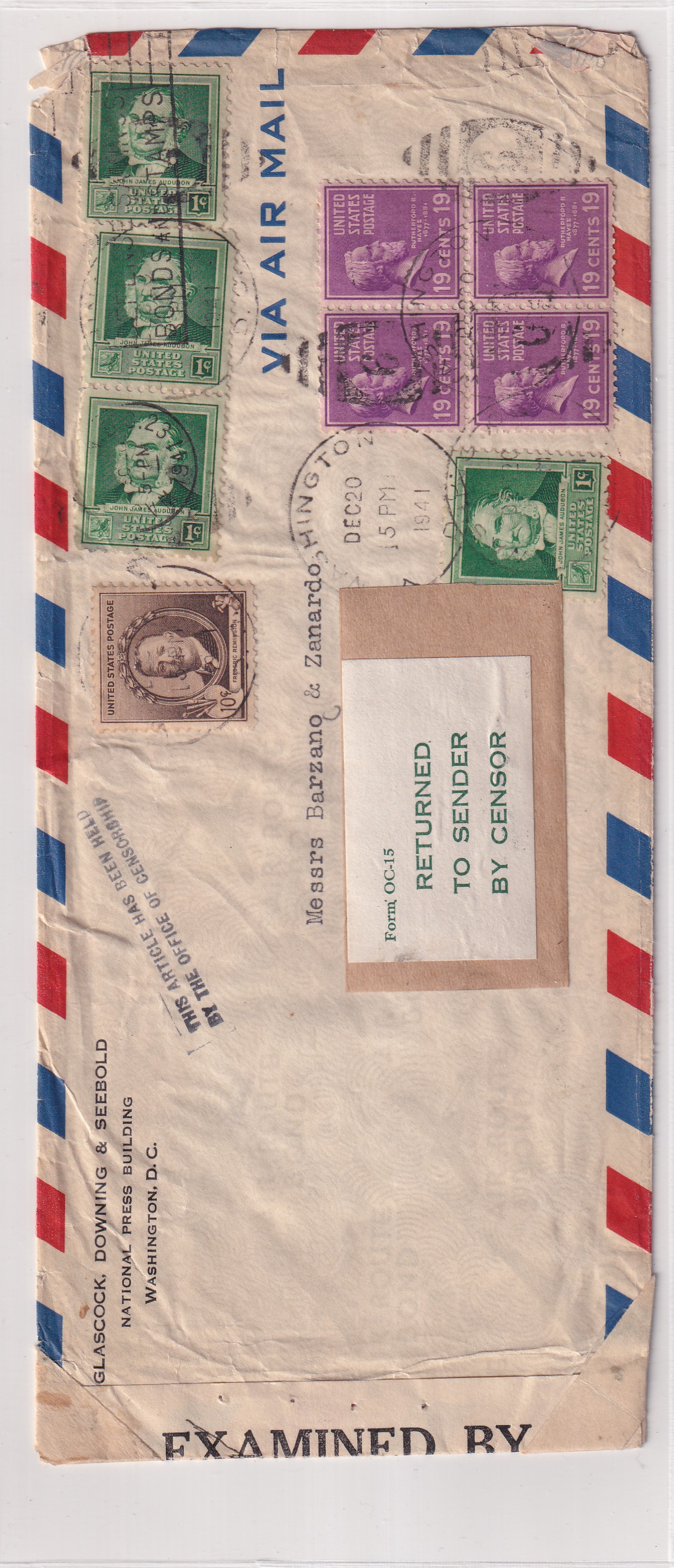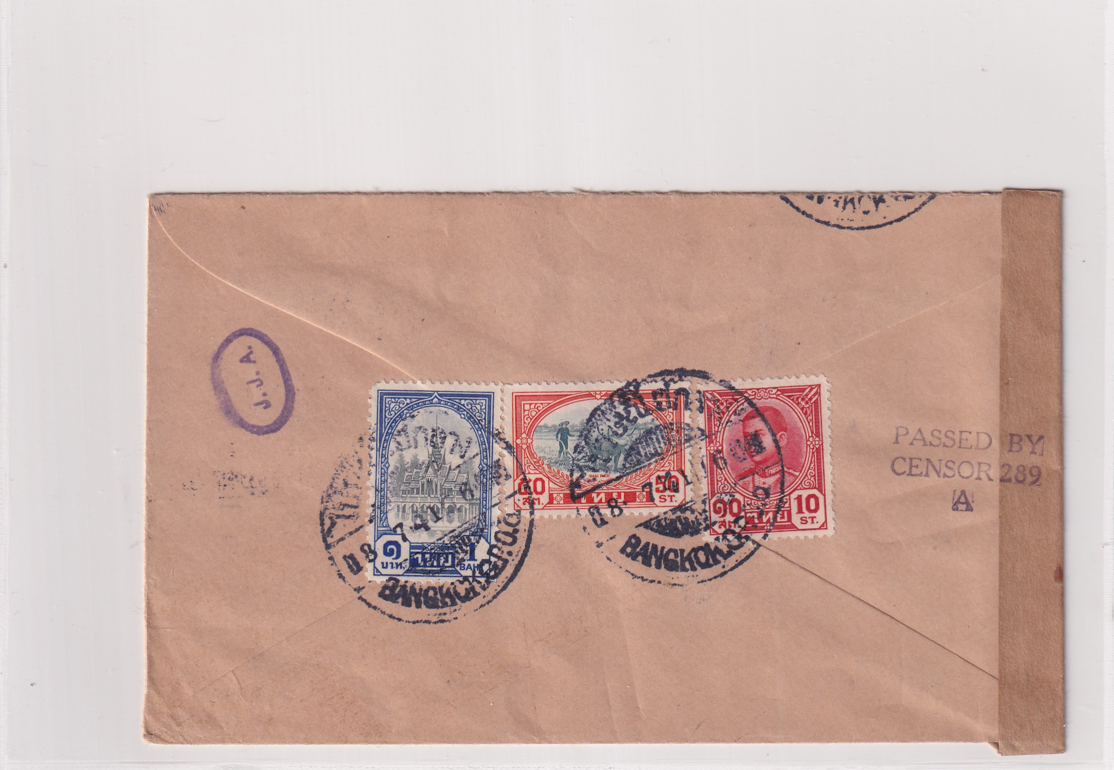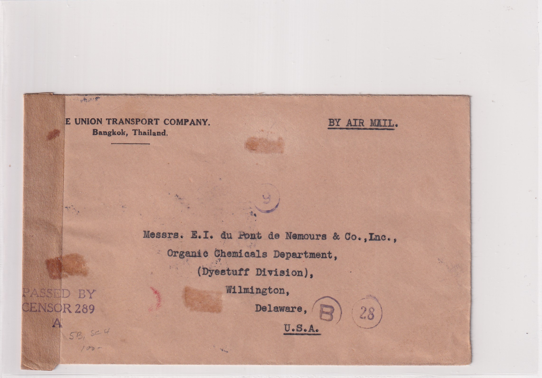 1941 Bangkok, Thailand to Wilmington, De Airmail Singapore Censor Tape ty 5B, Sc 4. Added Sunday, January 18, 2026