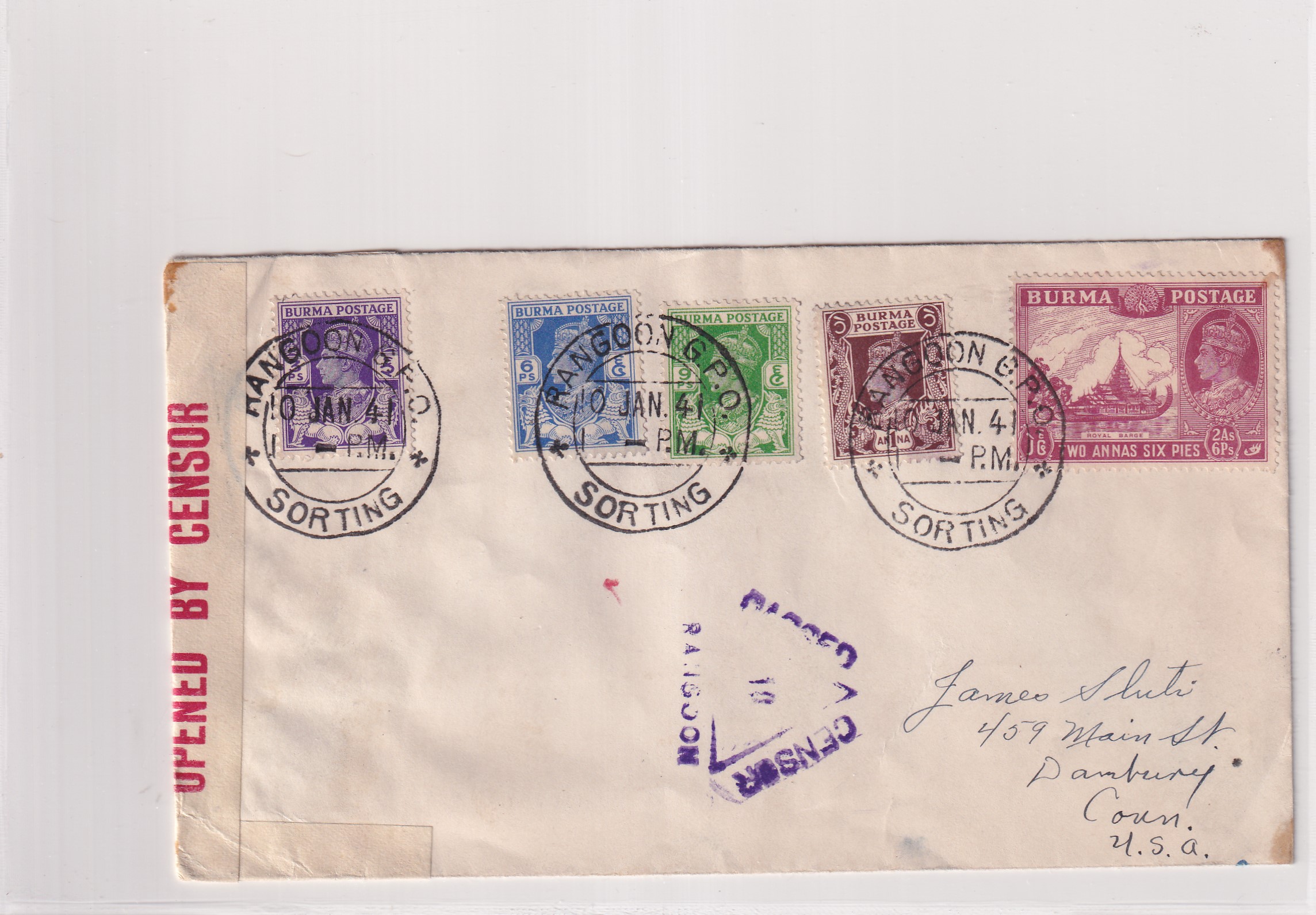 1941 Rangoon, Burma to Danbury, Ct Rangoon and India Censors. Added Sunday, January 18, 2026