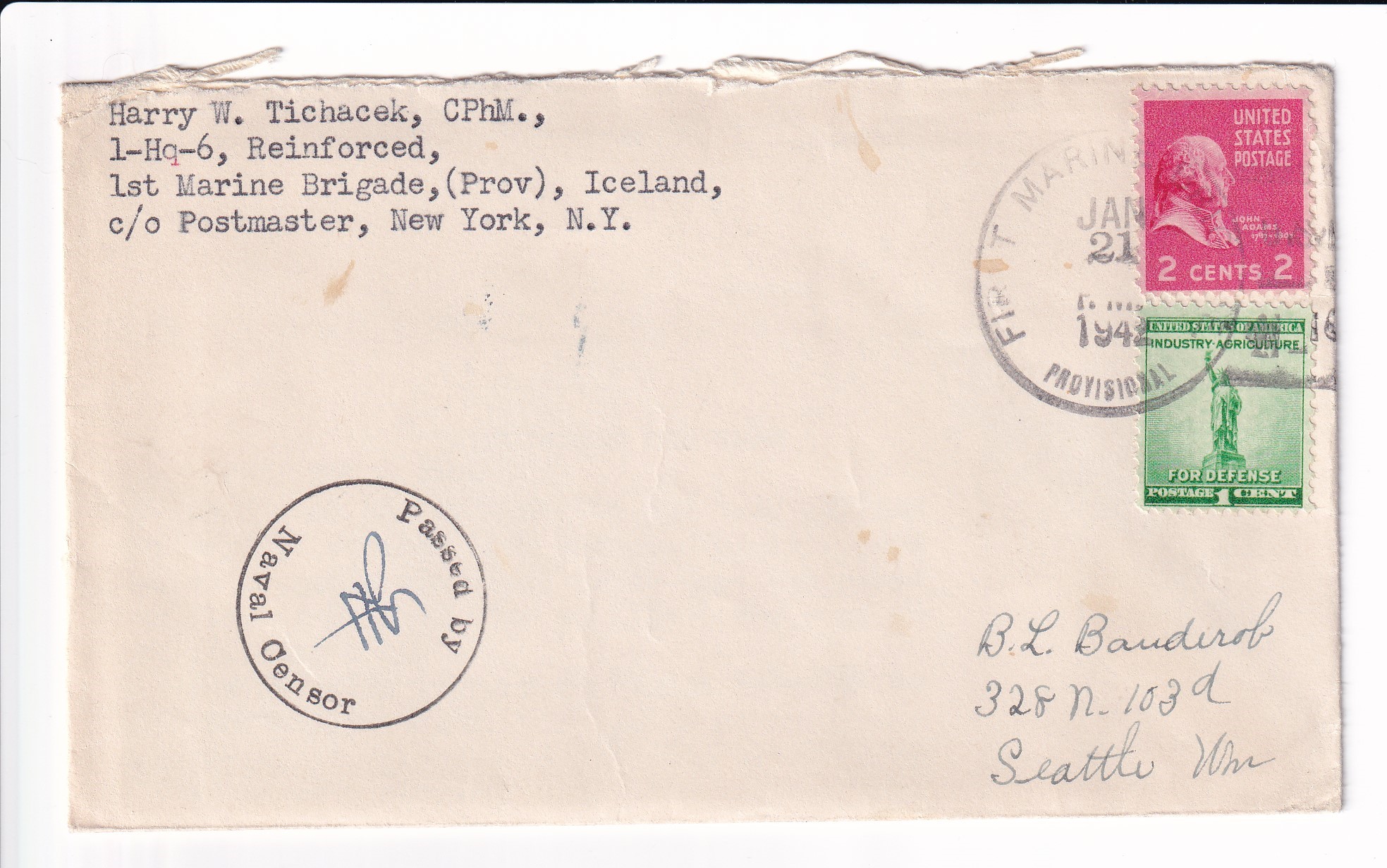 1942 1st Marine Brigade, Iceland to Seattle, Wa Censored. 2c Prexie & 1c For Defense. Added Sunday, December 28, 2025