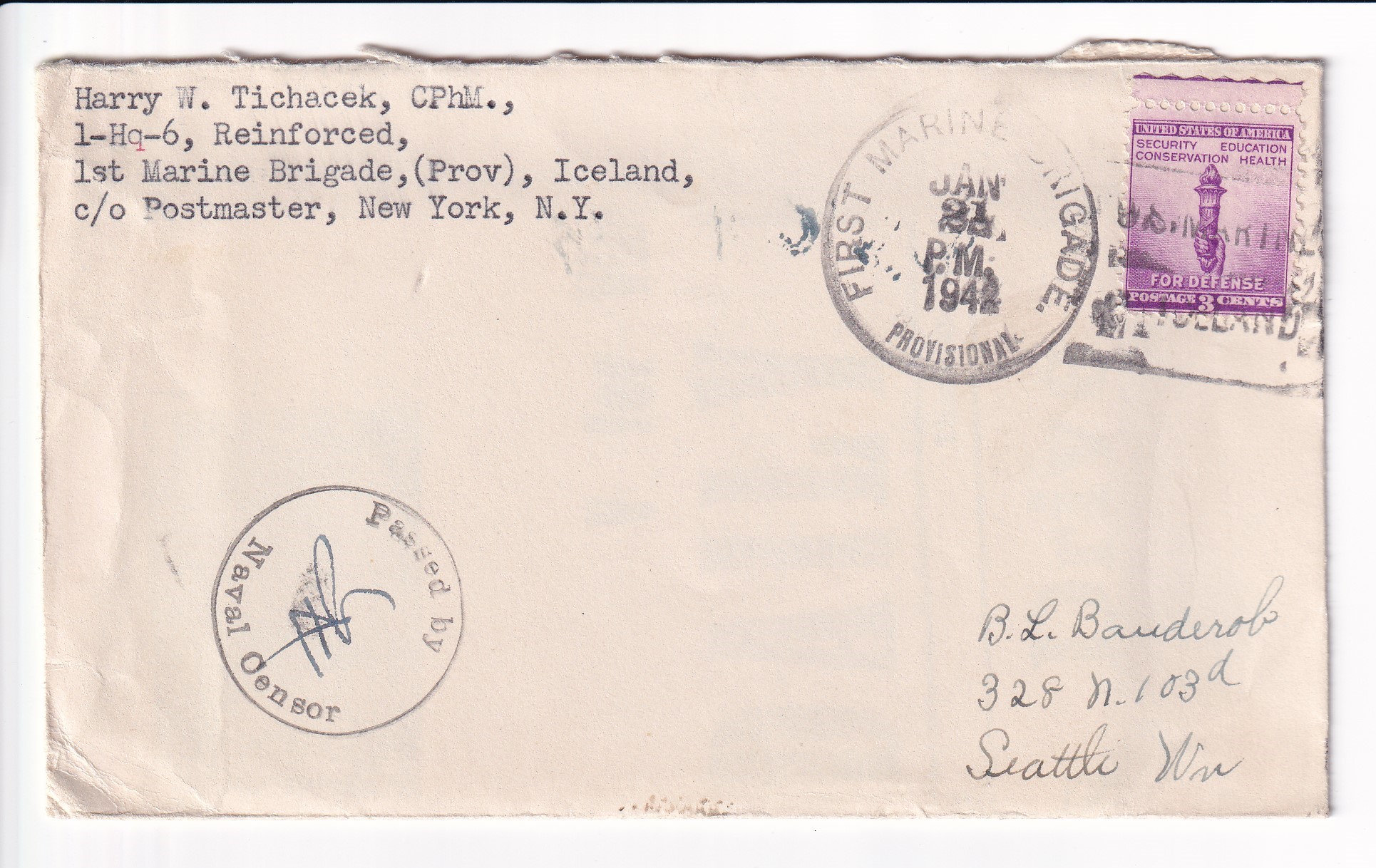 1942 1st Marine Brigade, Iceland to Seattle, Wa Censored. solo 3c For Defense. Added Sunday, December 28, 2025