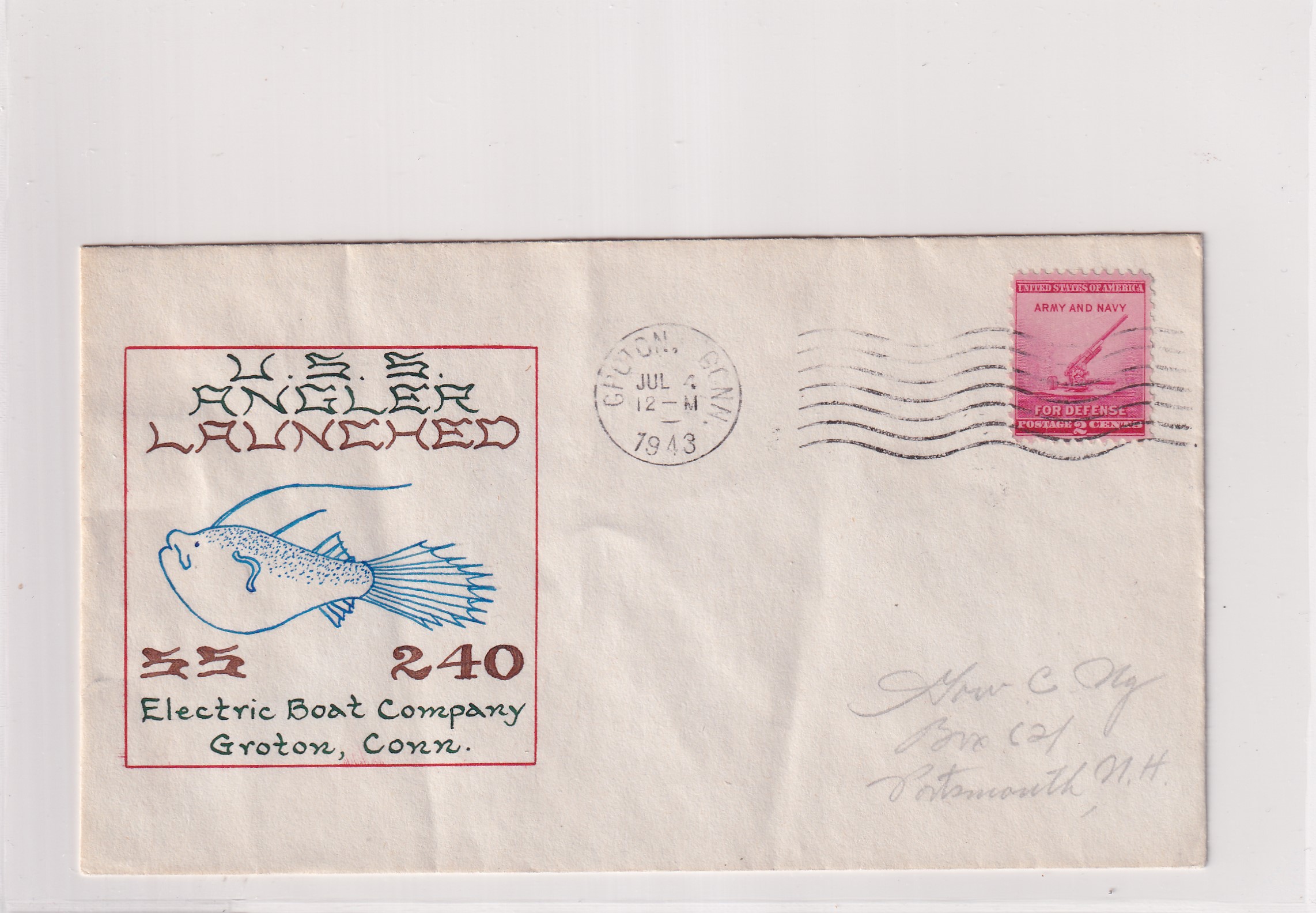 1943 USS Angler SS-240, Groton, Ct to Portsmouth, NH Launching Gow Ng cachet. Added Sunday, January 18, 2026
