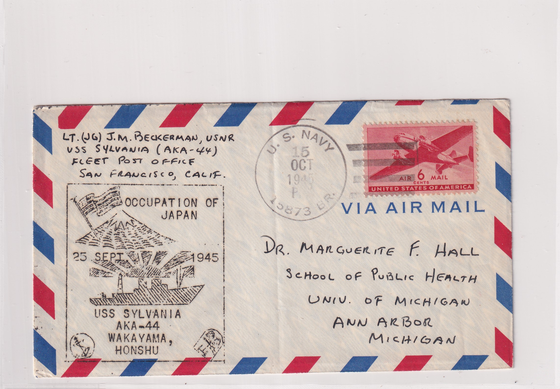 1946 USS Sylvania AKA-44, Occupation of Wakayama, Honshu, Japan to Ann Arbor, Mi Airmail. Added Sunday, January 18, 2026