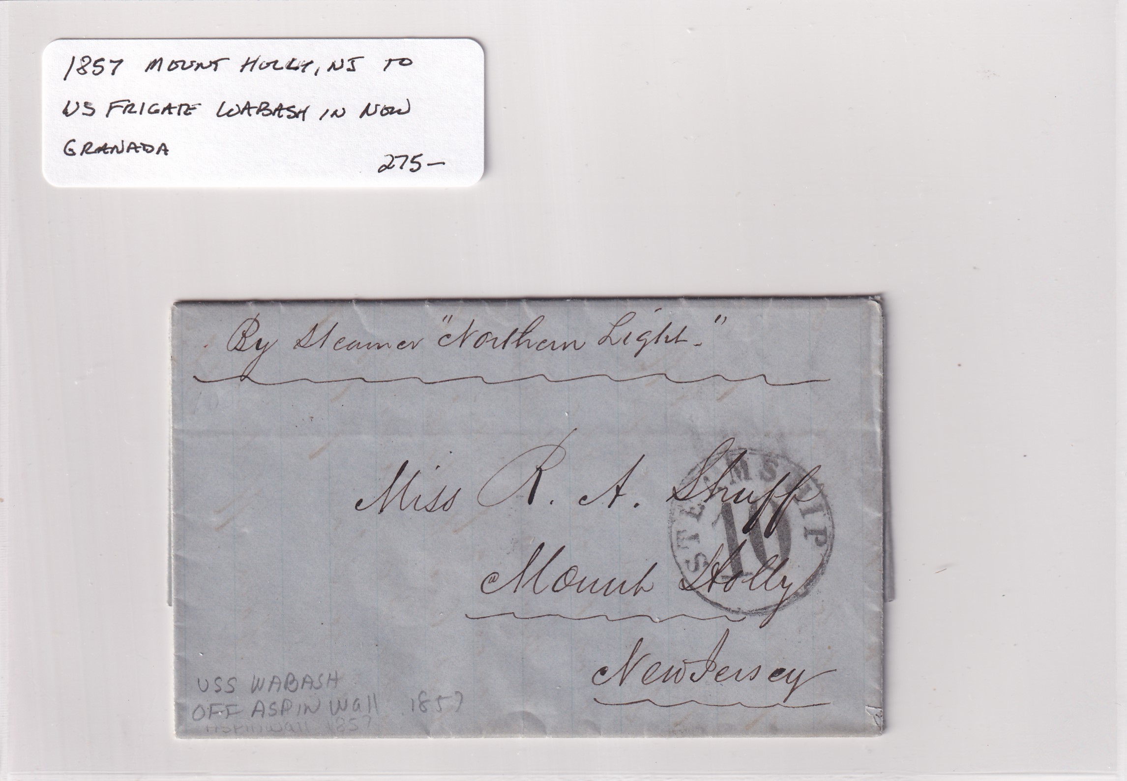 1857 Mount Holly, NJ to US Frigate Wabash in New Grenada. Stampless Folded Letter. New York steamship canx. Added Sunday, January 18, 2026