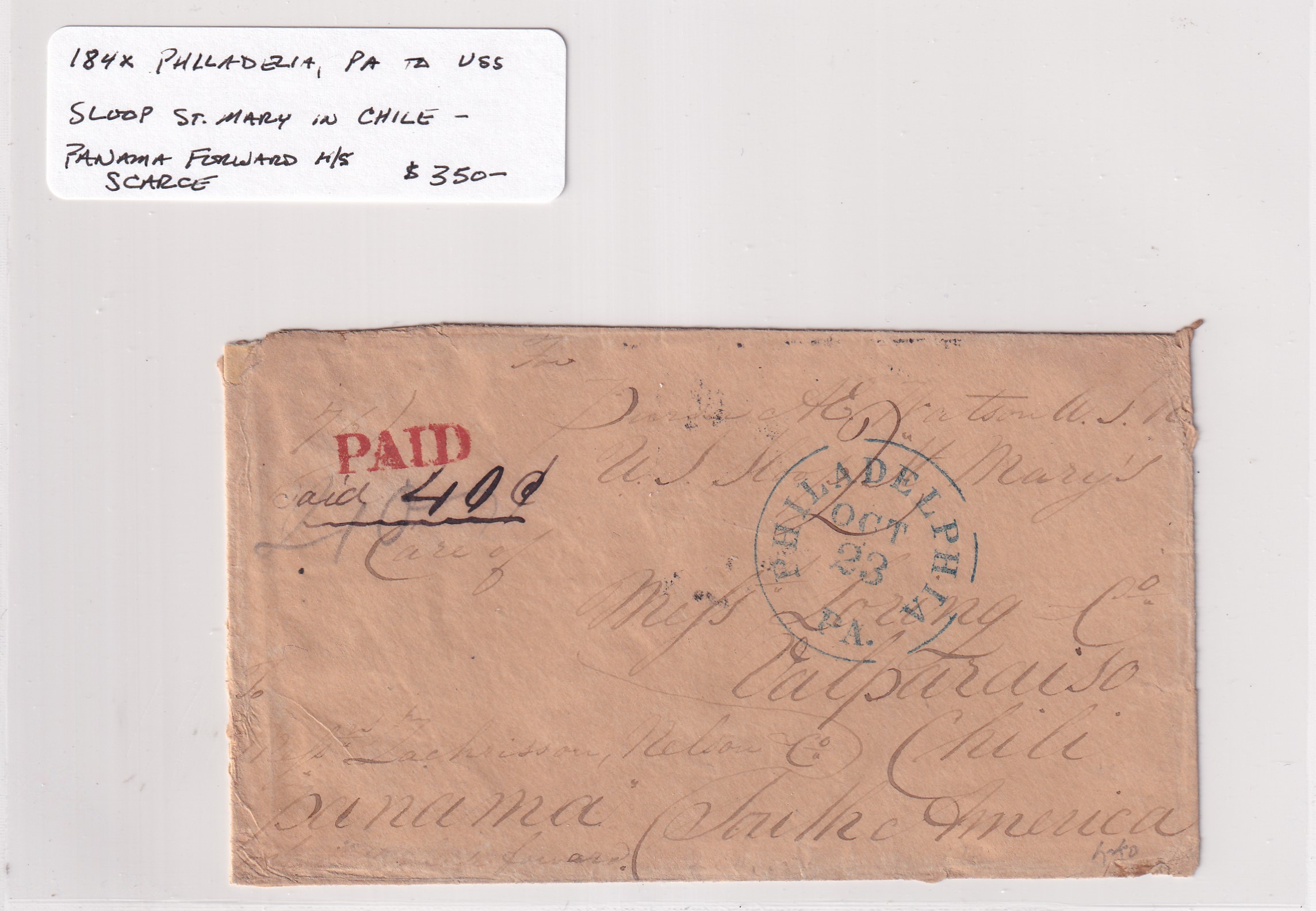 184x Philadelphia, Pa to USS Sloop St. Mary in Valparaiso, Chile w/Panama Forward handstamp (Scarce). Added Sunday, January 18, 2026