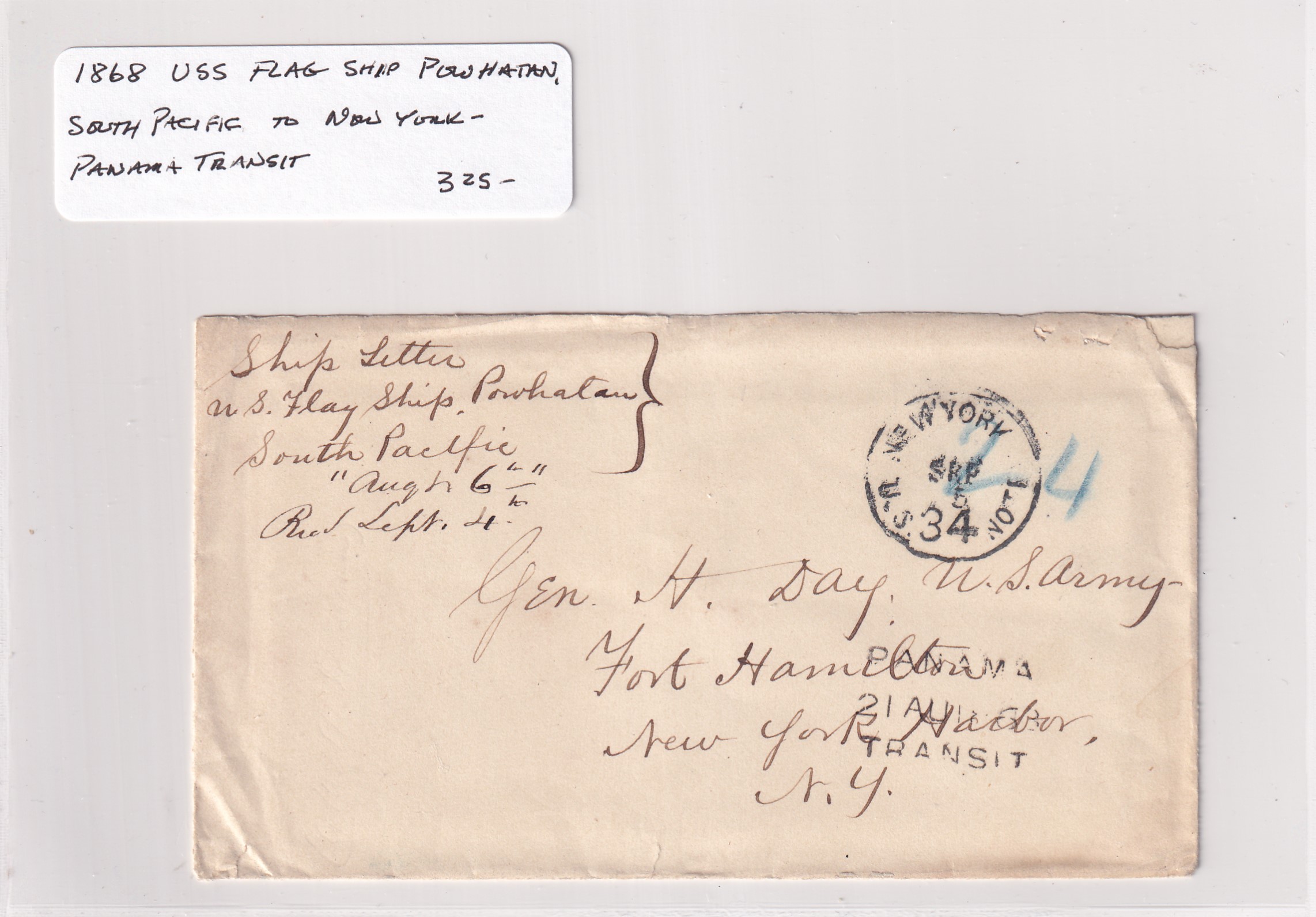 1868 USS Flage Ship "Powhatan", South Pacific, to Gen H.Day, USA, Fort Hamilton, NY via Panama Transit. Added Sunday, January 18, 2026