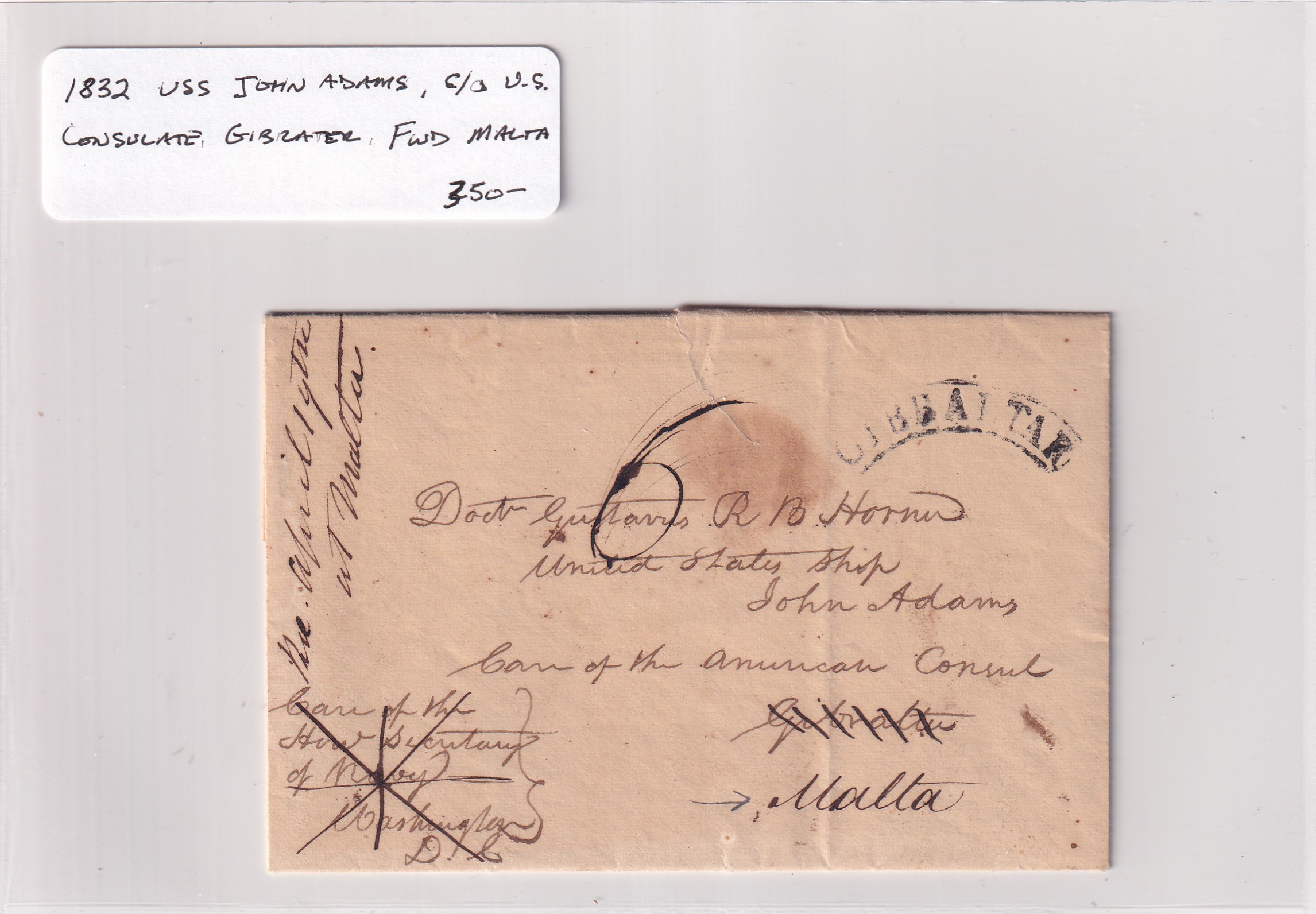 1832 Warrenton, Va to USS John Adams c/o US Consulate in Gibraltar fwd Malta. Added Sunday, January 18, 2026