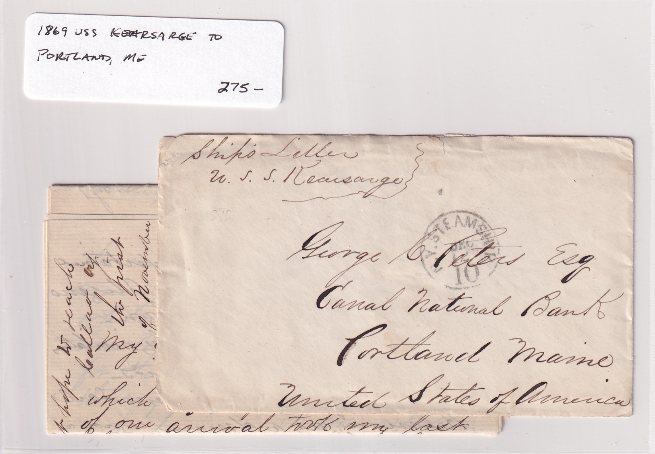 1869 USS Kearsarge to Portland, Me w/Letter. New York Steamship canx. Added Sunday, January 18, 2026