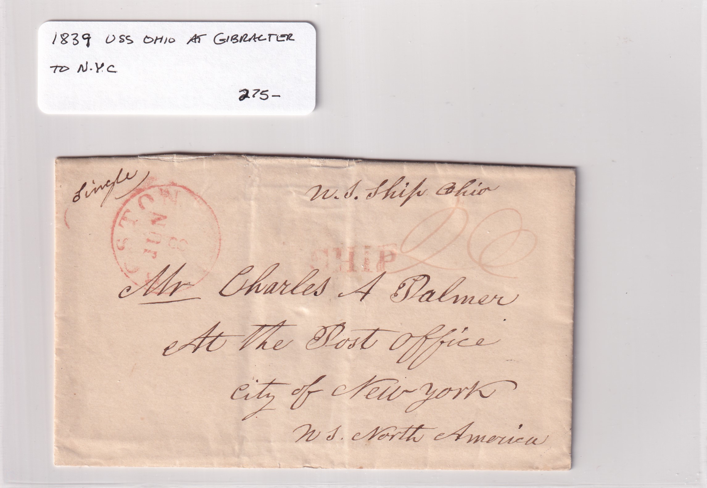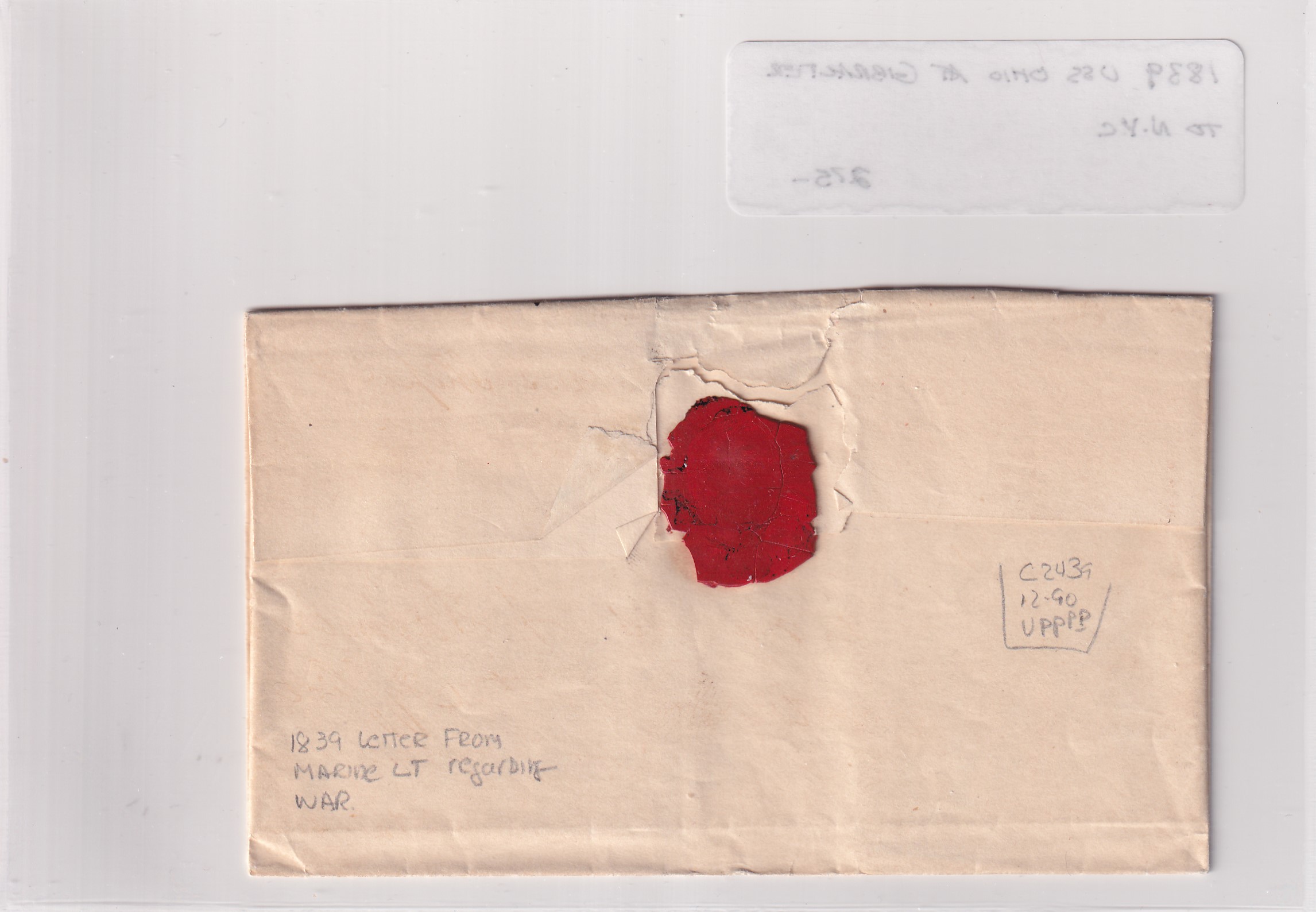1839 USS Ohio at Gibraltar to New York City, NY. Stampless Folded Letter fm US Marine about the War. Added Sunday, January 18, 2026