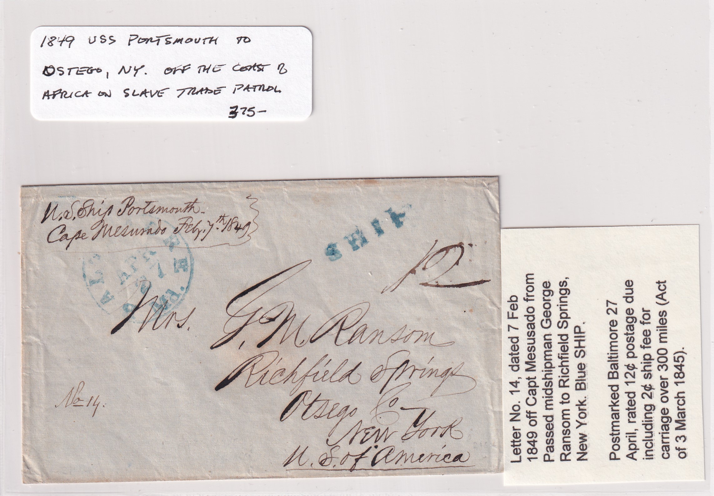 1849 USS Portsmouth, off the coast of Liberia on Slave Trade Patrol to Otsego, NY. Added Sunday, January 18, 2026