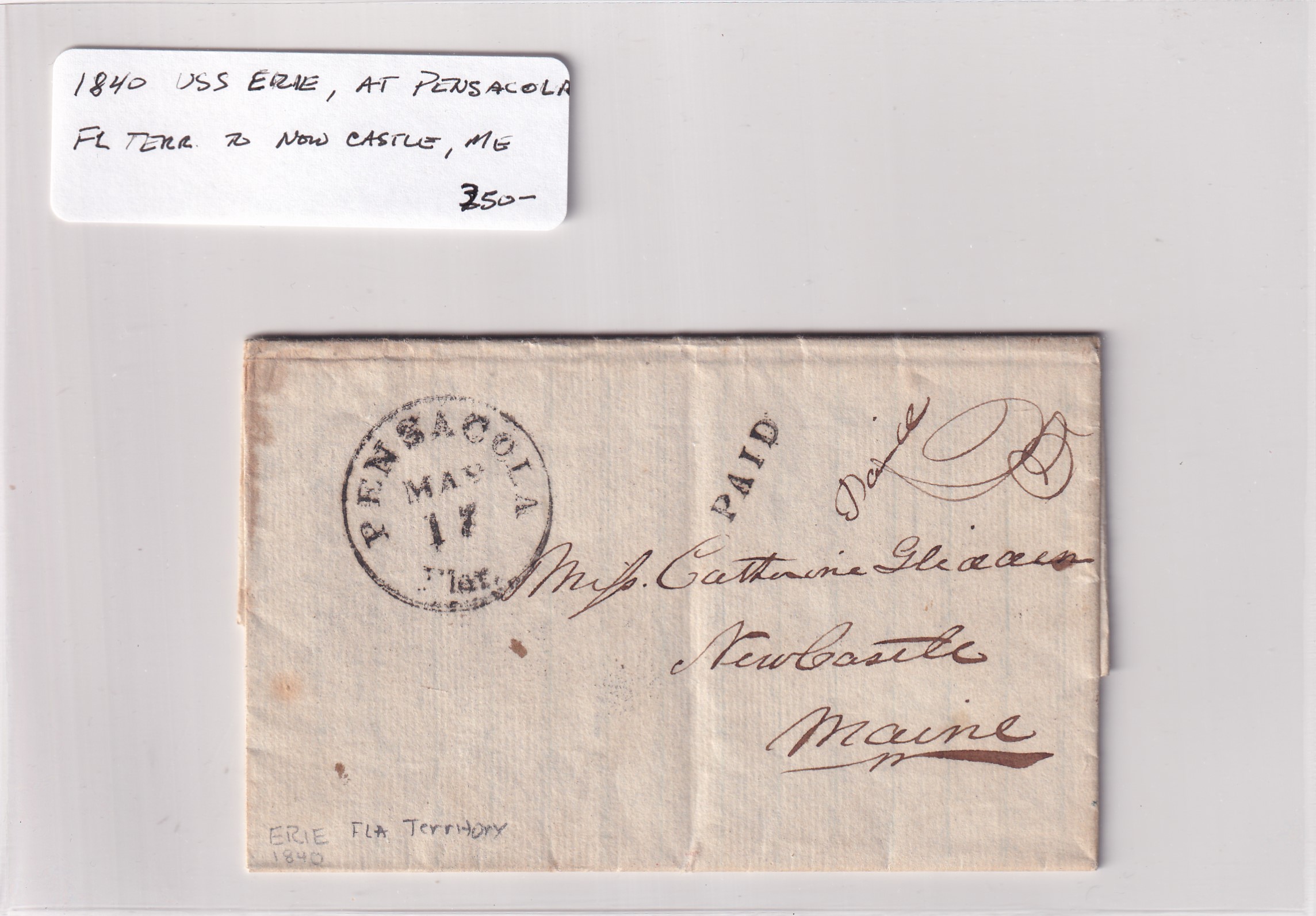 1840 USS Erie at Pensacola, Florida Territory to New Castle, Ma Stampless Folded Letter. Added Sunday, January 18, 2026