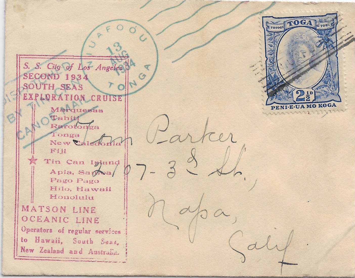 1934 Niuafoou, Tonga to Napa, Ca Tin Can Canoe Mail. Added Wednesday, September 17, 2025