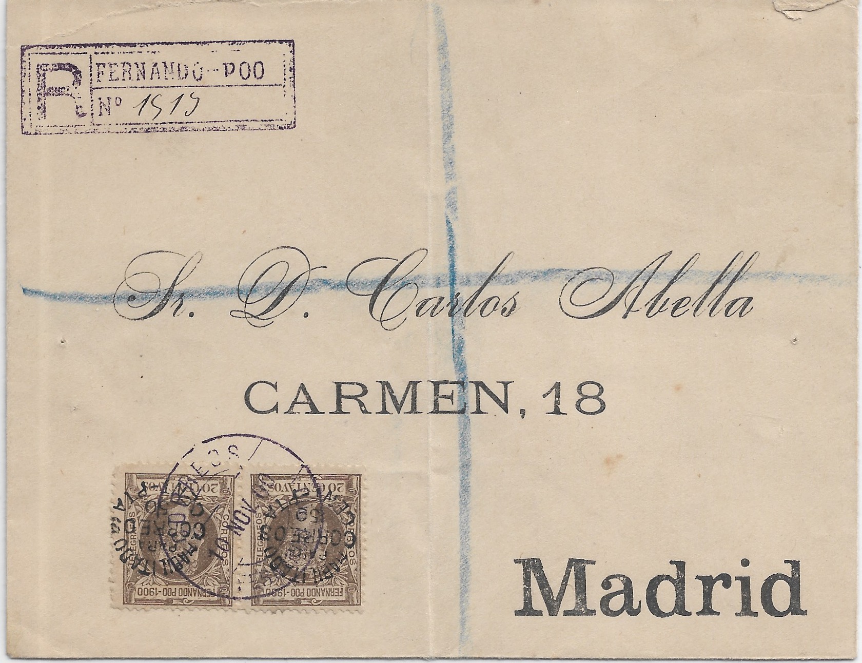 1900 Fernando Poo to Madrid, Spain Registered. back stamped Madrid. Added Sunday, September 14, 2025