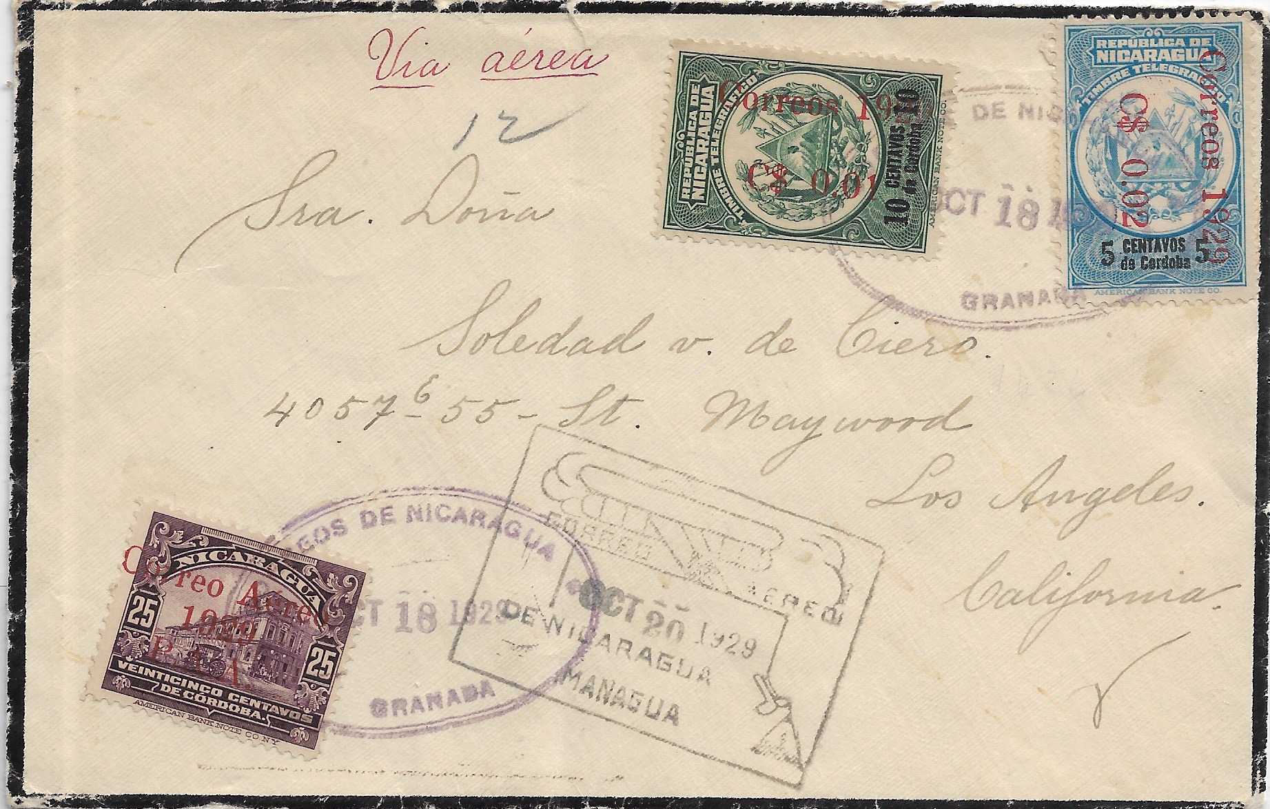 1929 Granada, Nicaragua to Los Angeles, Ca Airmail Morning Cover. Added Sunday, September 14, 2025