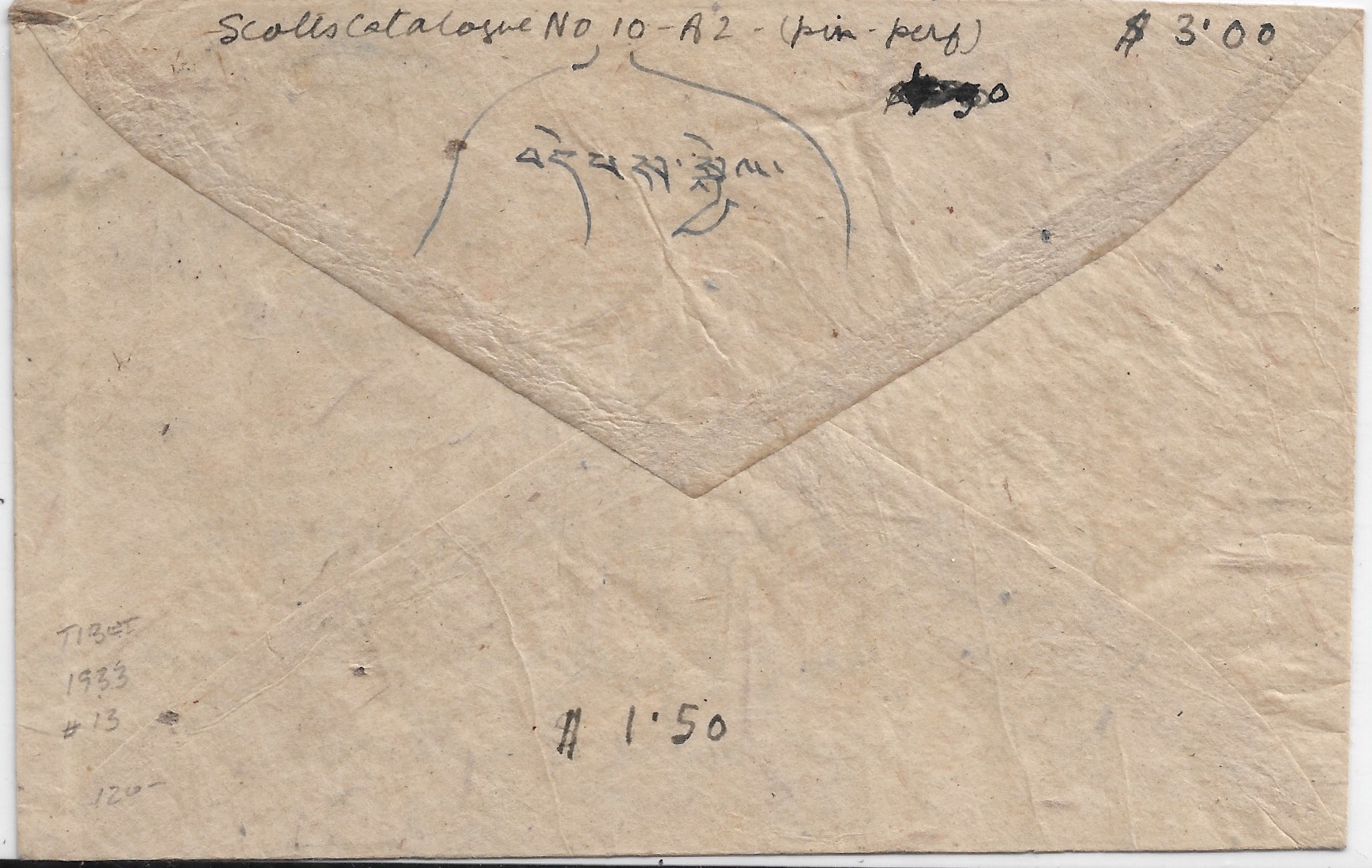1933 Tibet, Sc #13 on Local Cover. Added Sunday, September 14, 2025