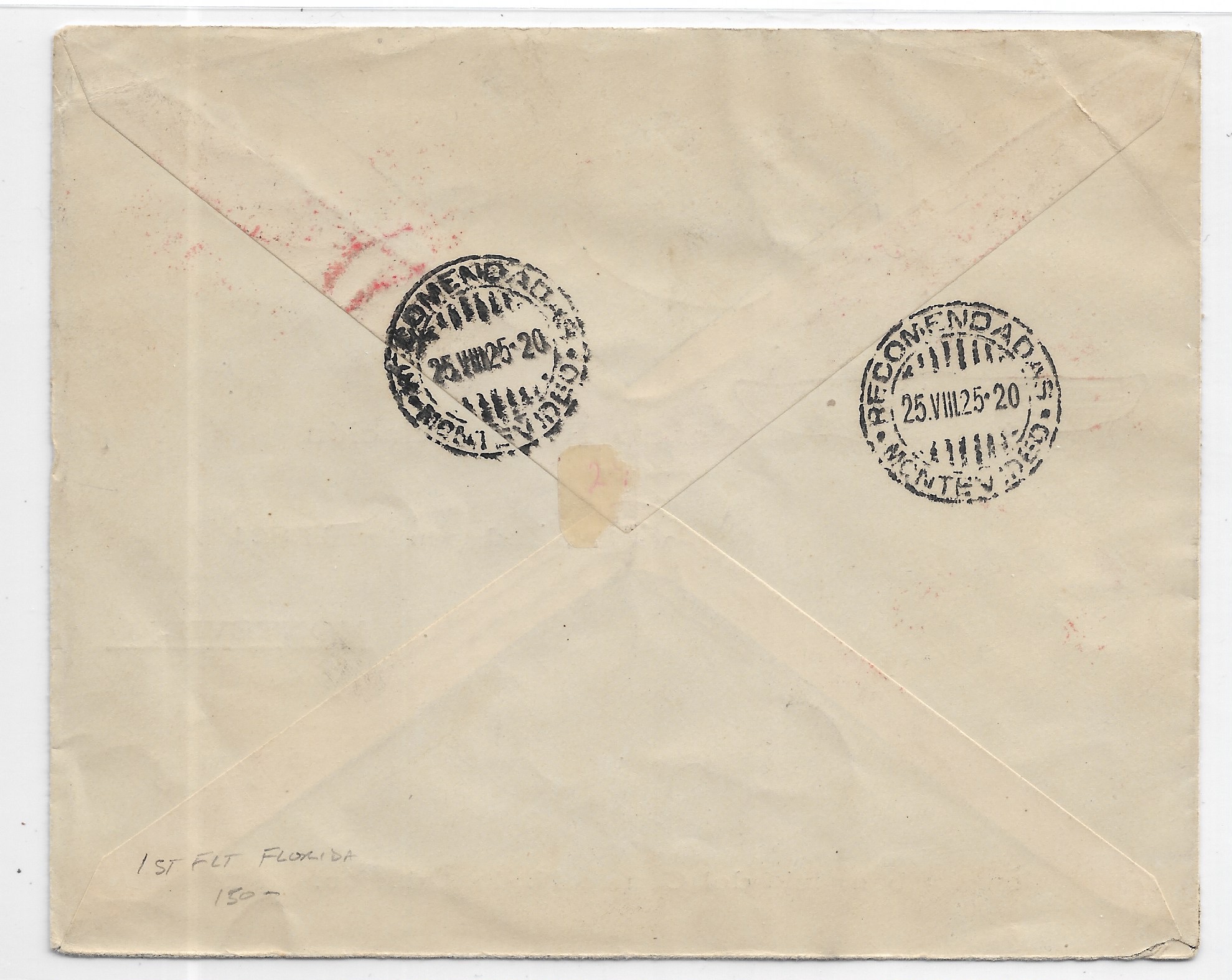 1925 1st Flight Florida to Montevideo, Uruguay. Back stamped Montevideo. Added Sunday, September 14, 2025