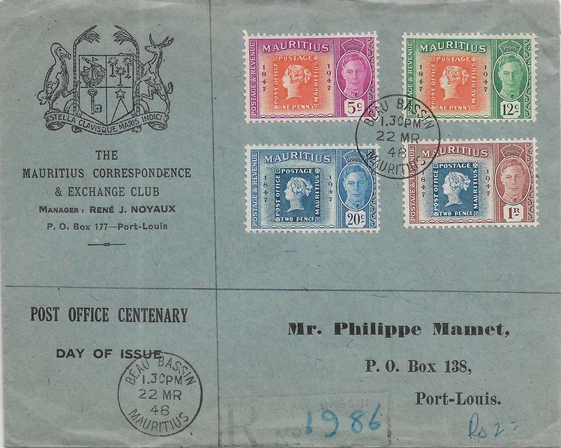 1948 Beau Bassin to Port Louis, Mauritius Registered FDC. Added Wednesday, September 17, 2025
