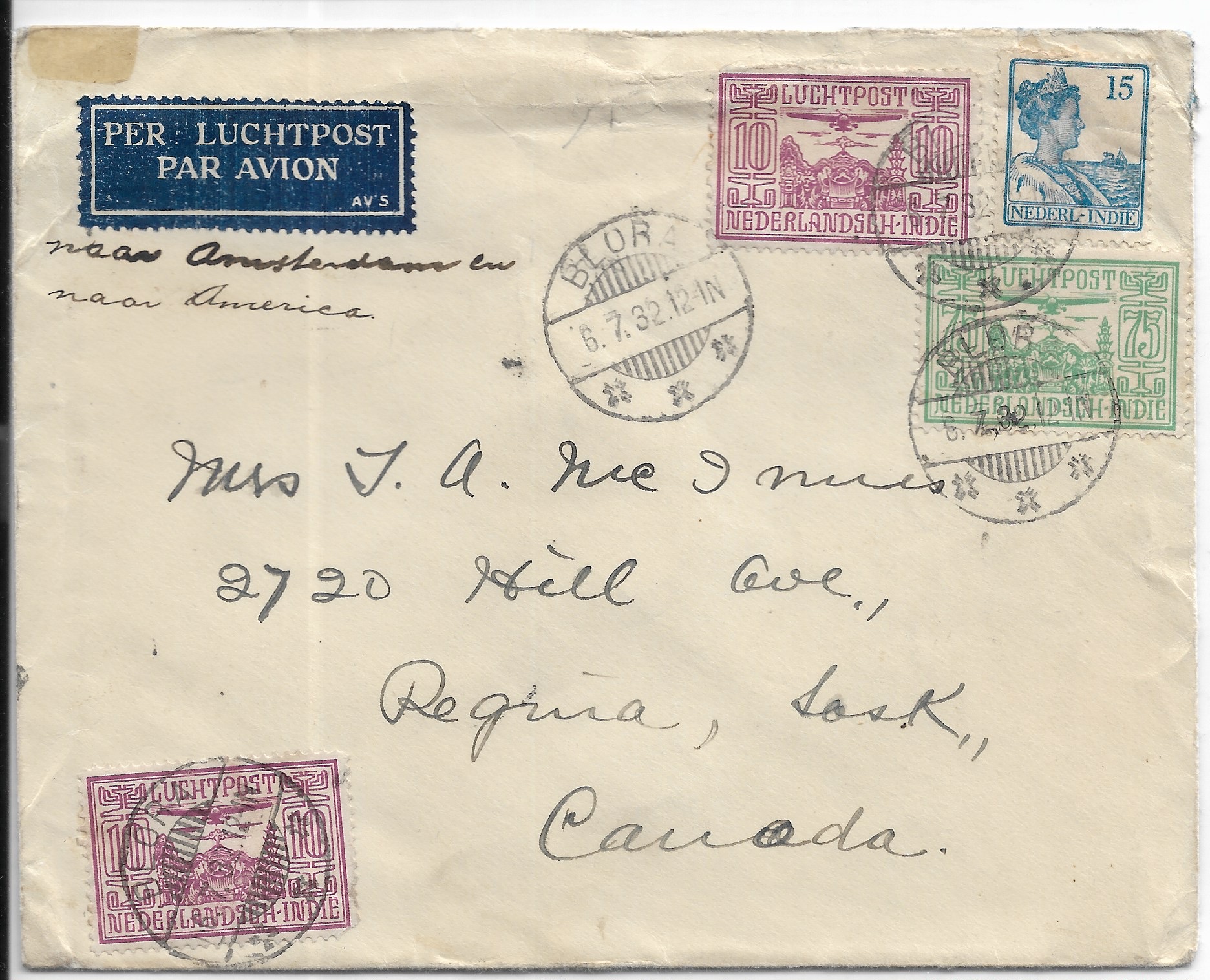 1932 Blora, Dutch East Indies to Regina, Canada Airmail via KLM. back stamped Batavia. Added Sunday, September 14, 2025