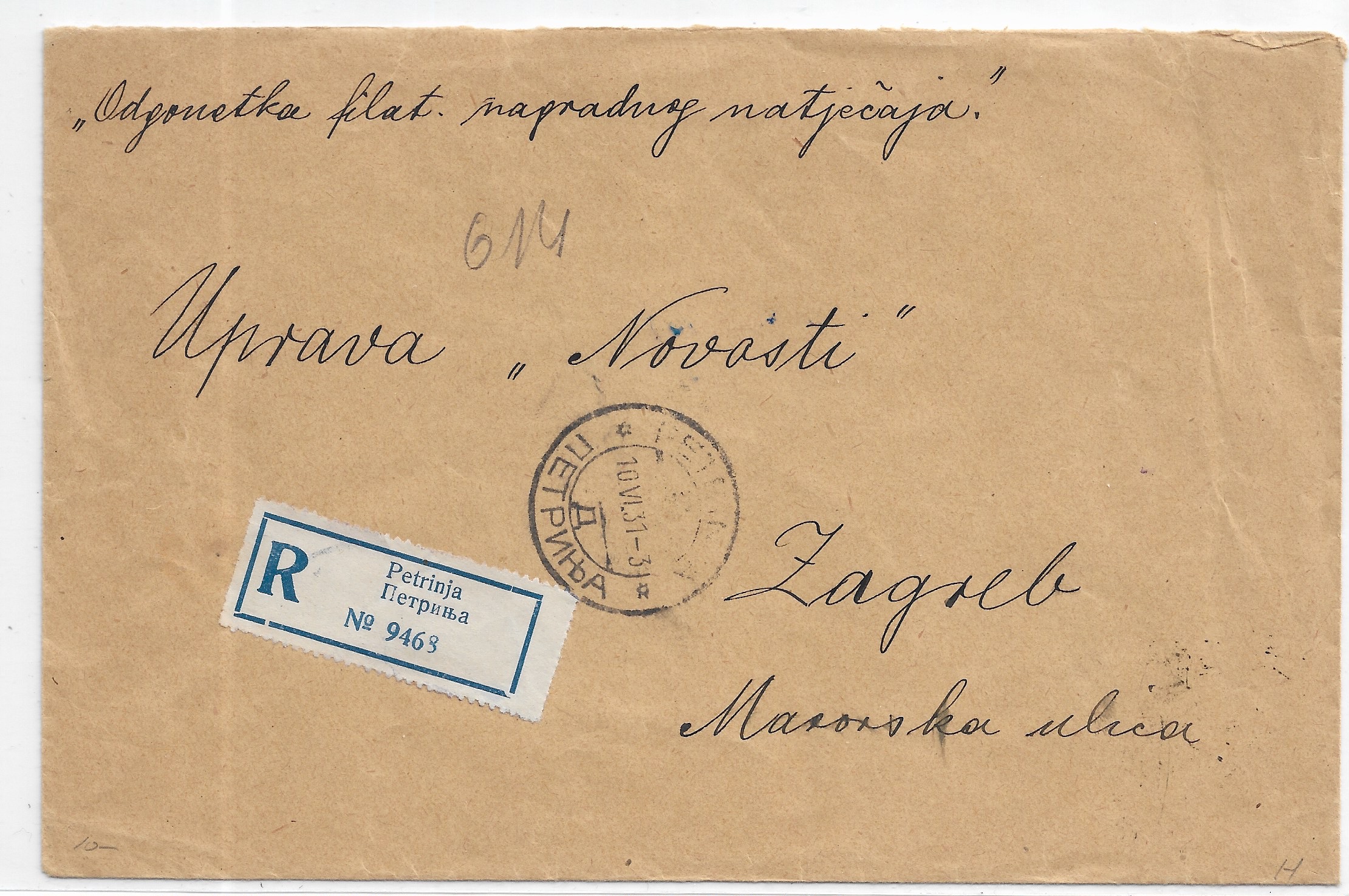 1931 Patrinja to Zagreb, Yugoslavia Registered. Added Wednesday, September 17, 2025