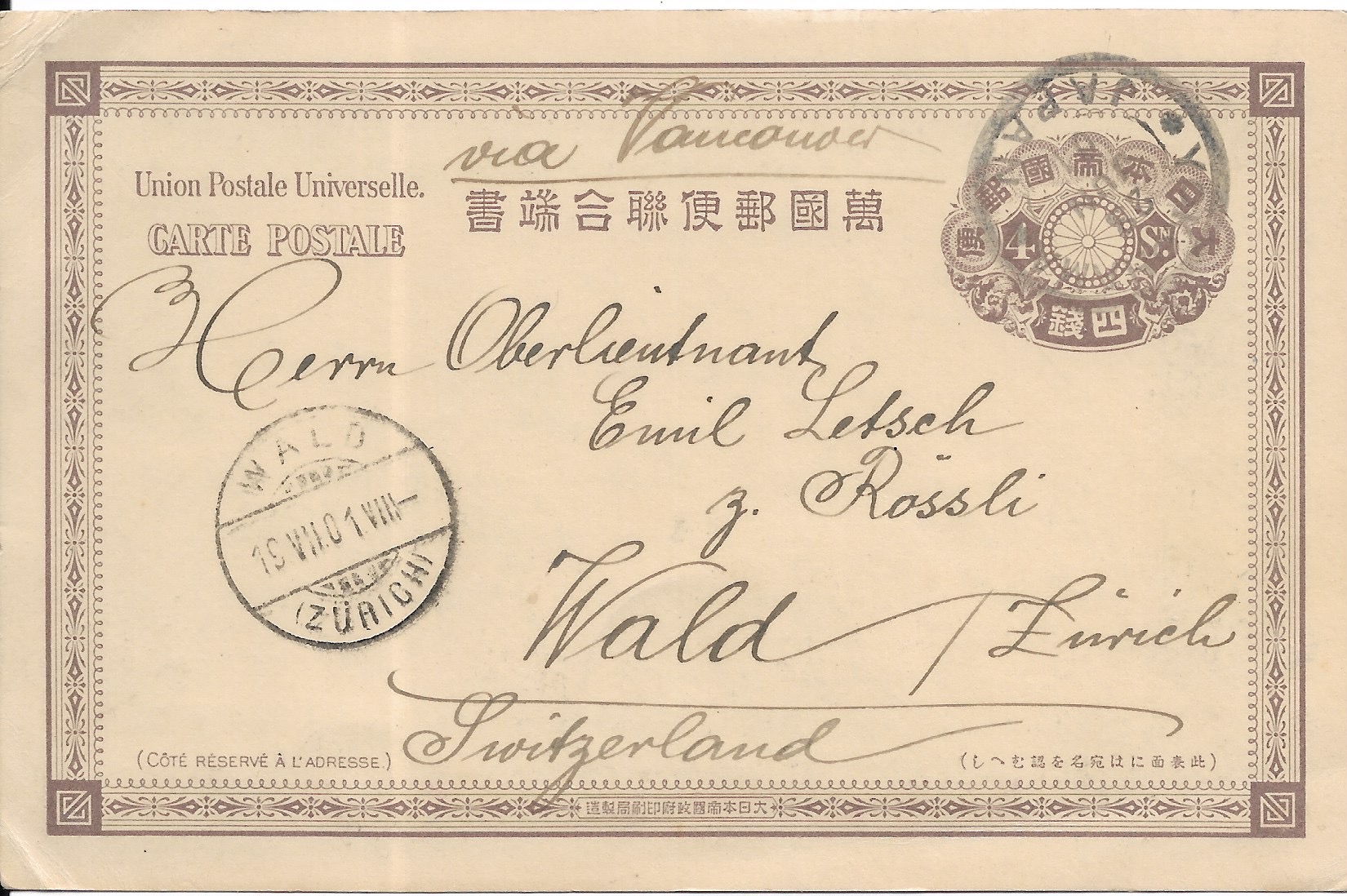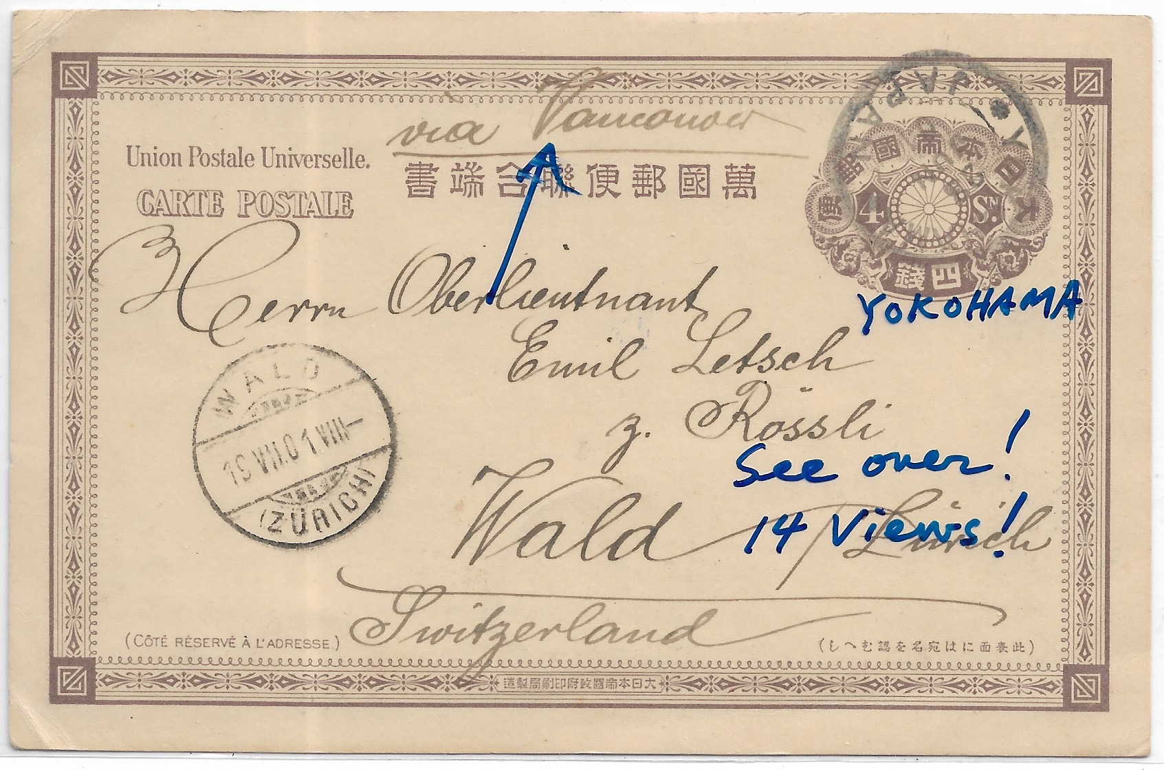 1901 Yokohama, Japan to Wald, Switzerland. Added Wednesday, September 17, 2025