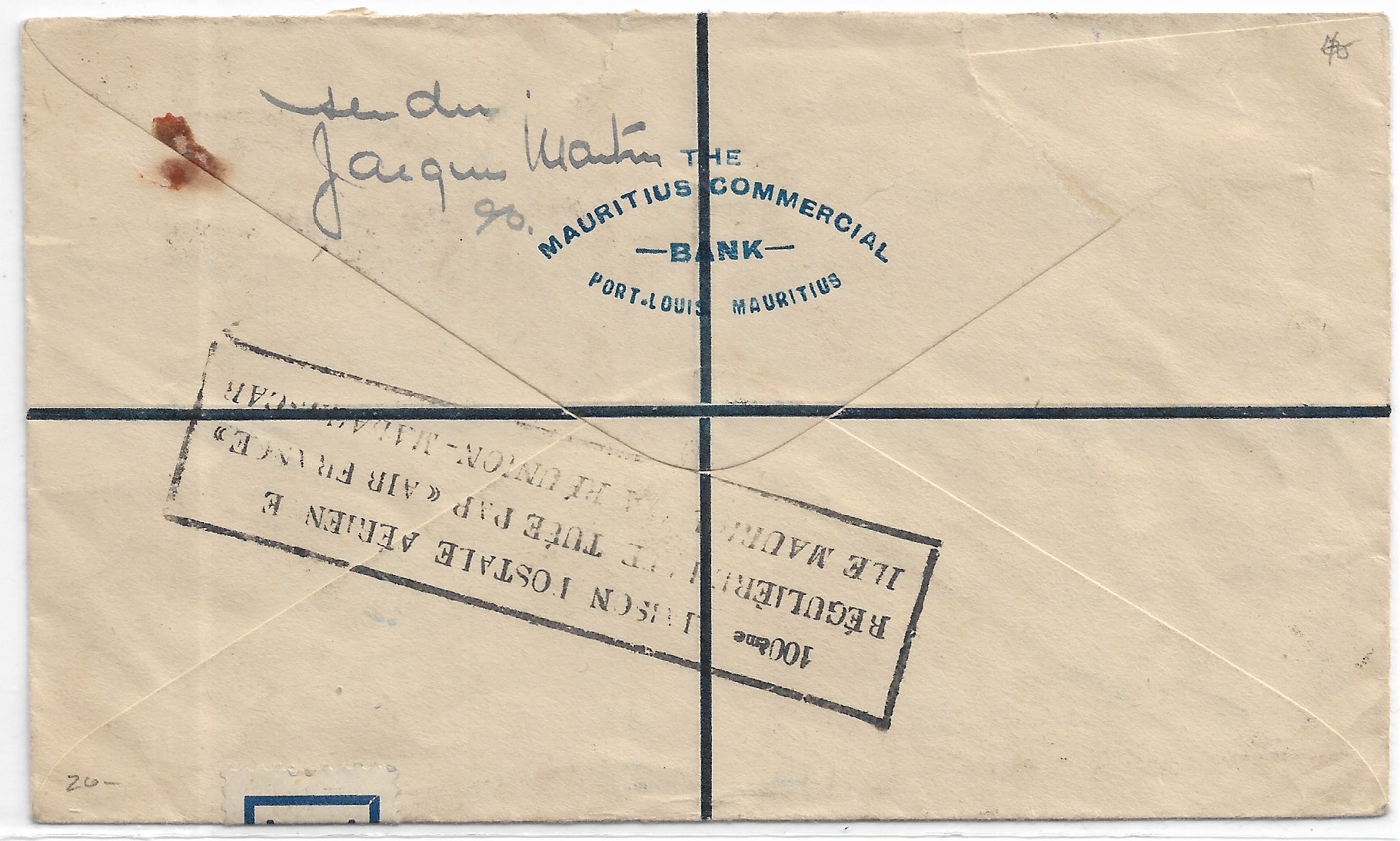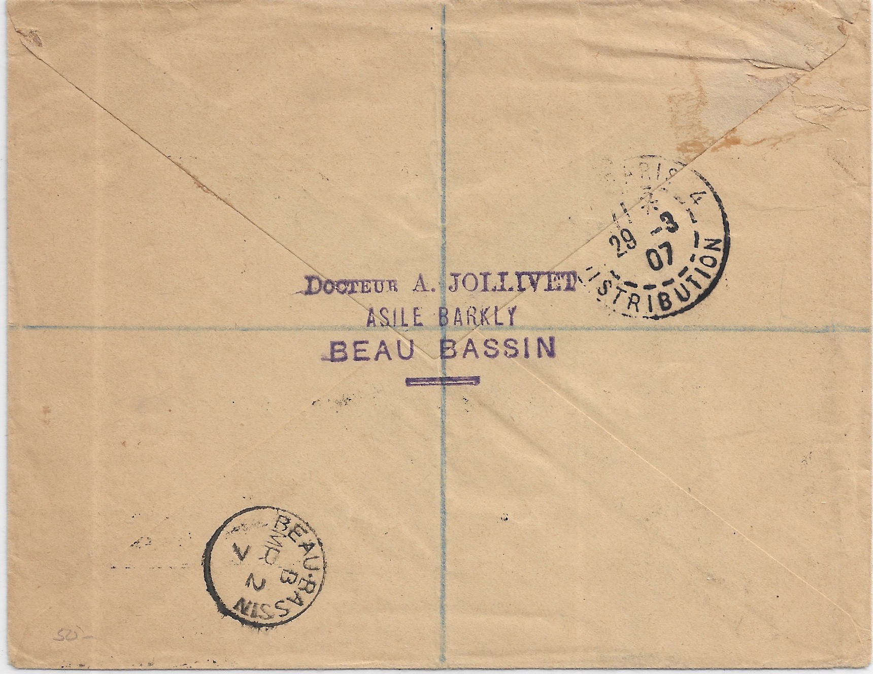 1907 Mauritius to Paris, France Registered. back stamped Paris & Beau-Basin. Added Sunday, October 12, 2025