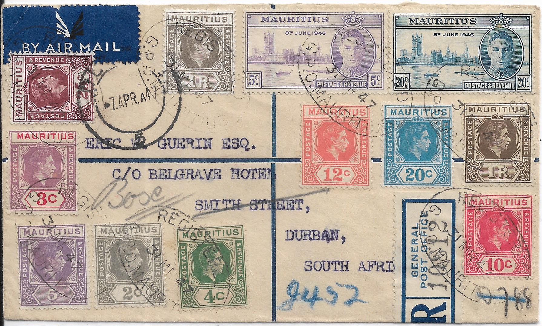1947 Mauritius to Durban, South Africa Registered Airmail. Added Sunday, September 14, 2025
