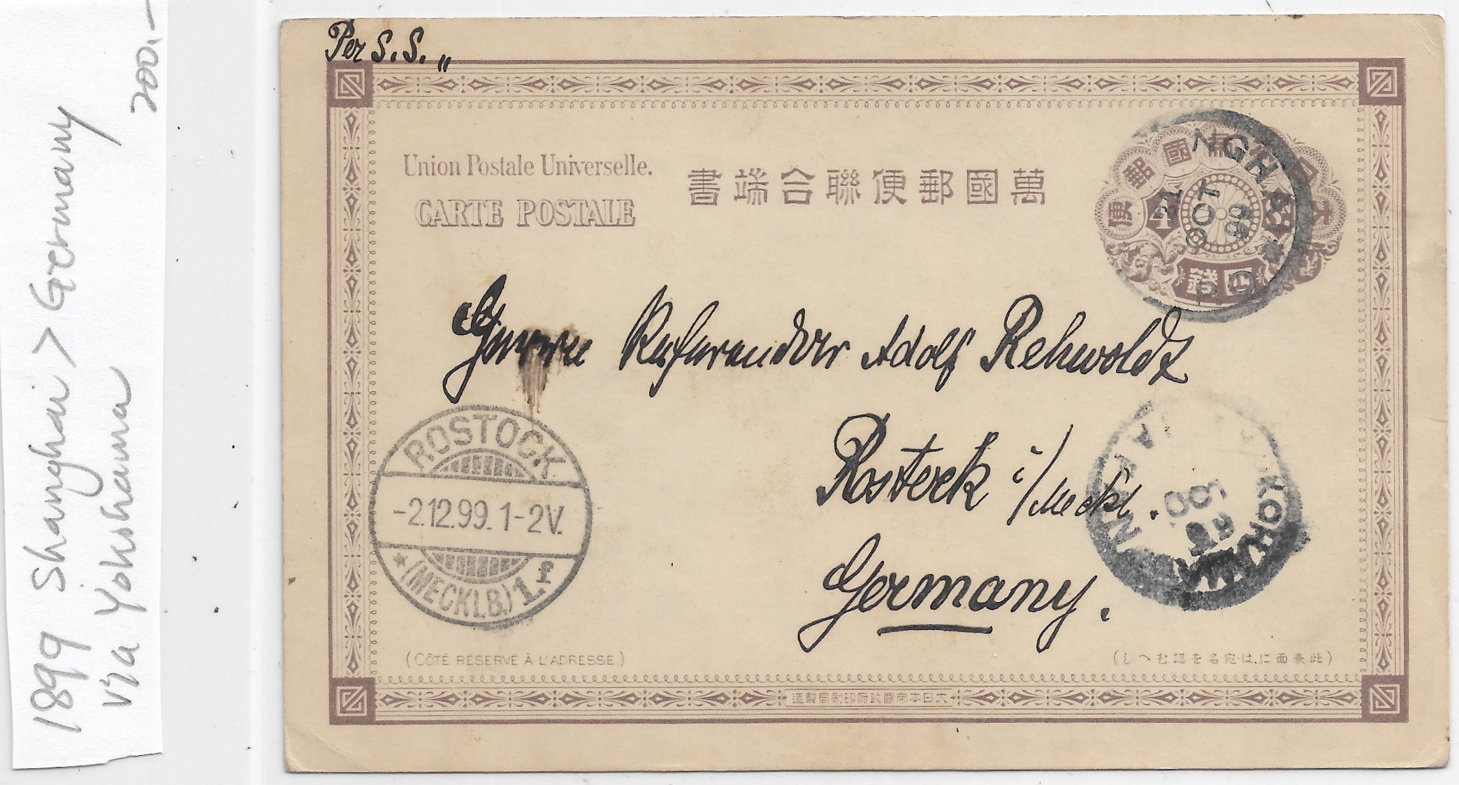1899 Shanghai, China to Rostock, Germany via Yokohama. Added Sunday, September 14, 2025
