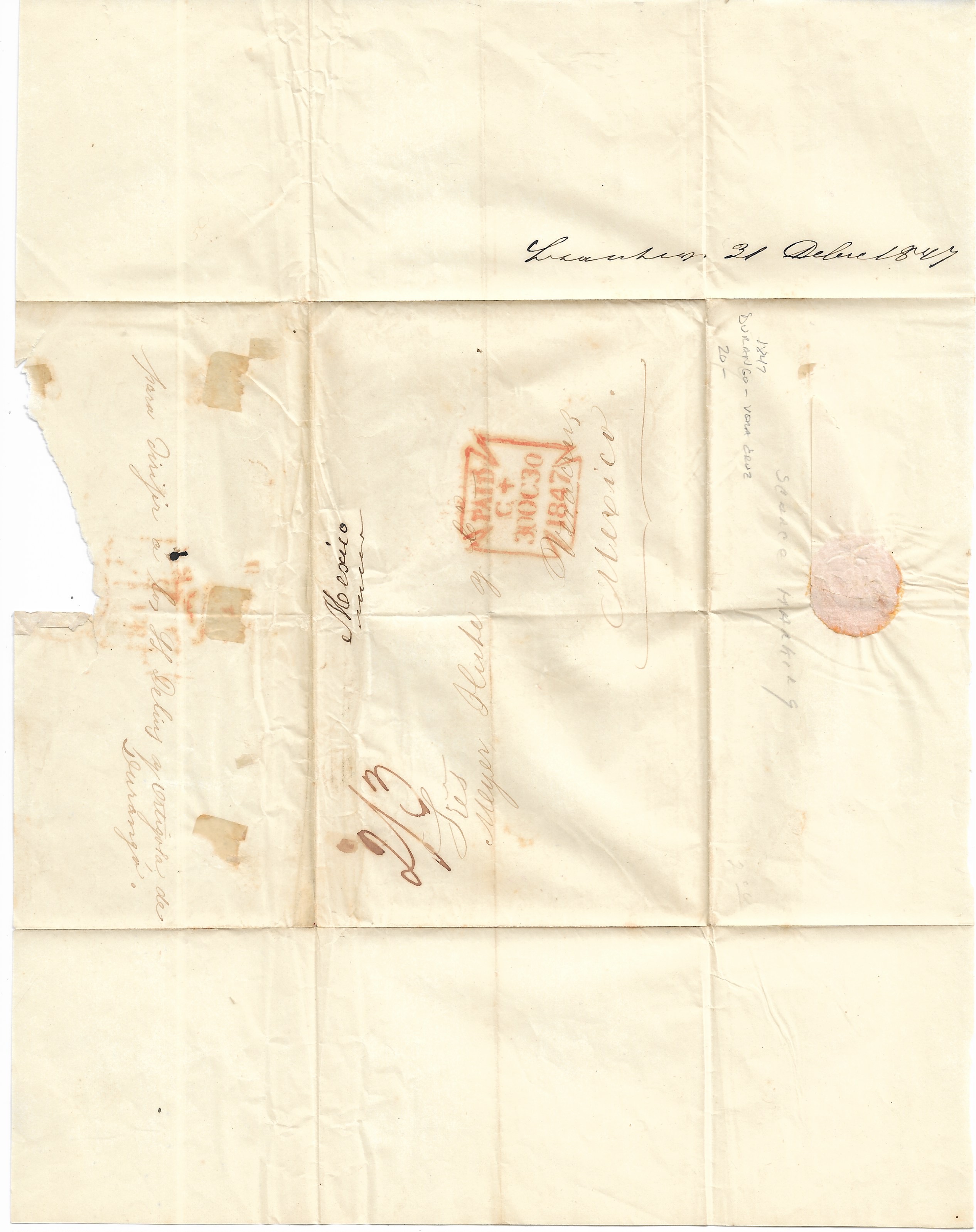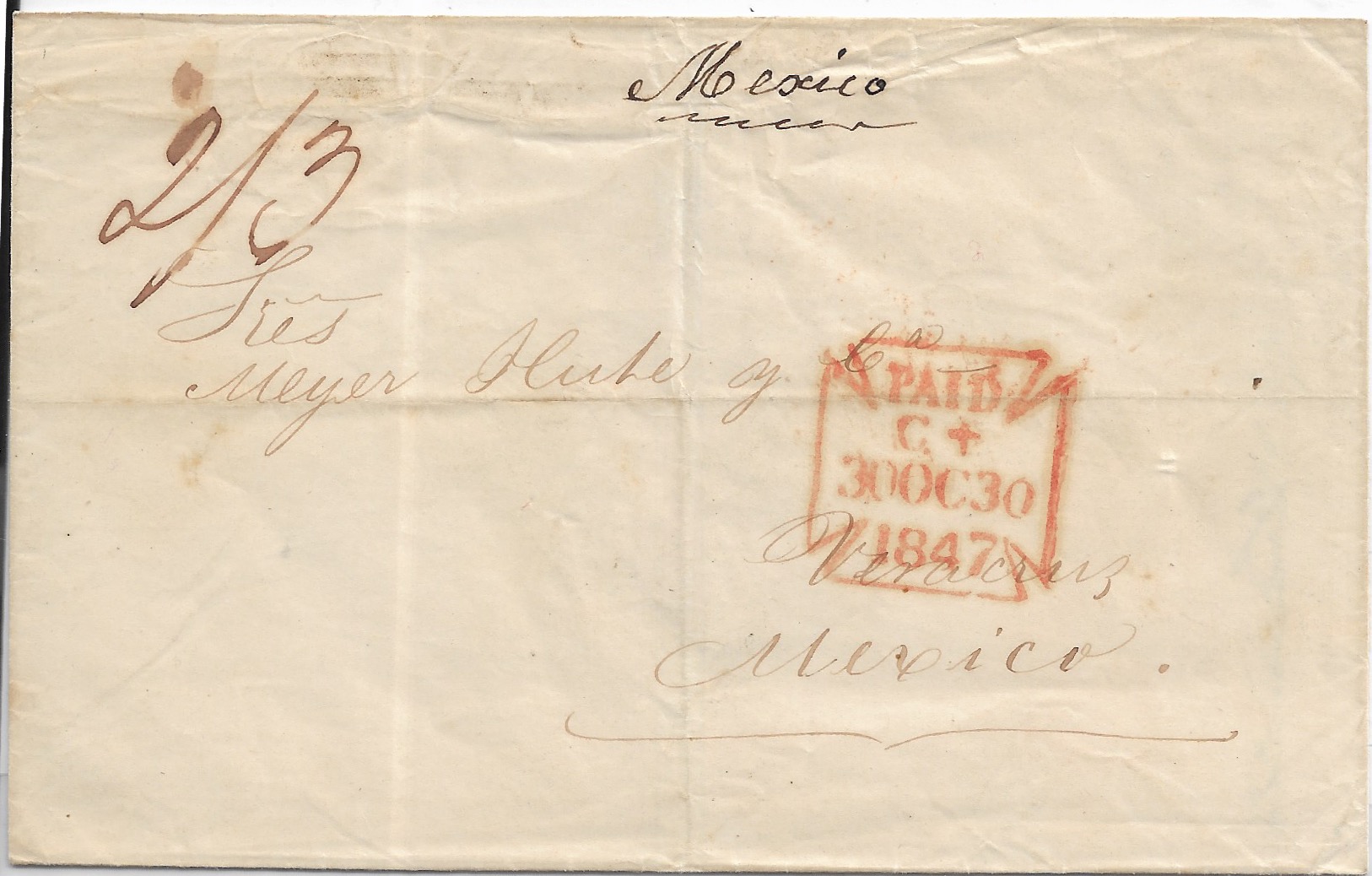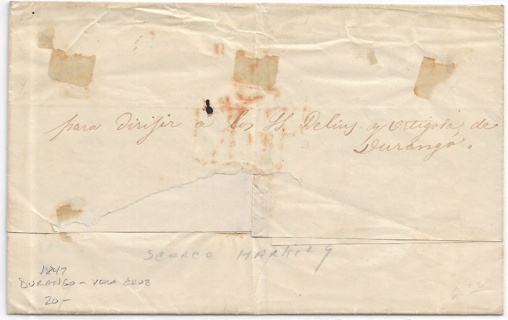 1847 Durango to Vera Cruz, Mexico Stampless. Added Wednesday, September 17, 2025