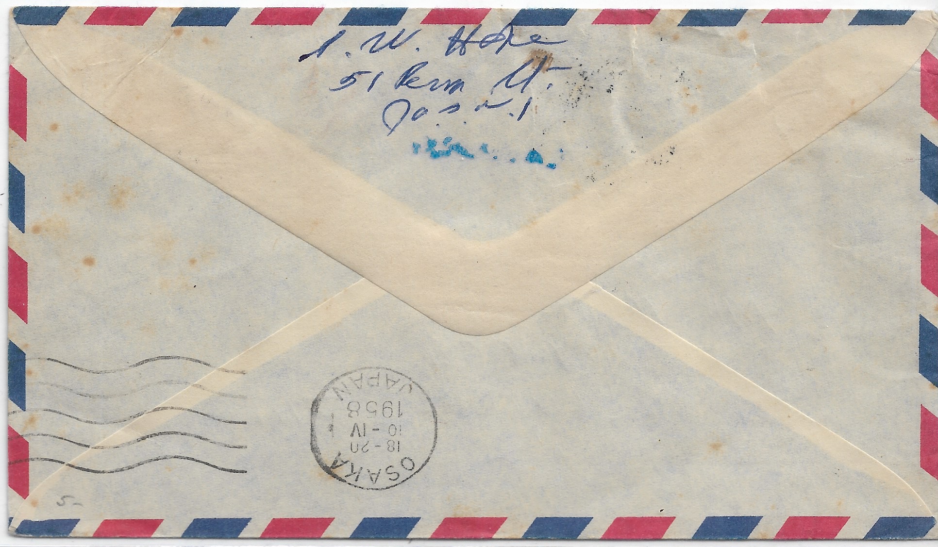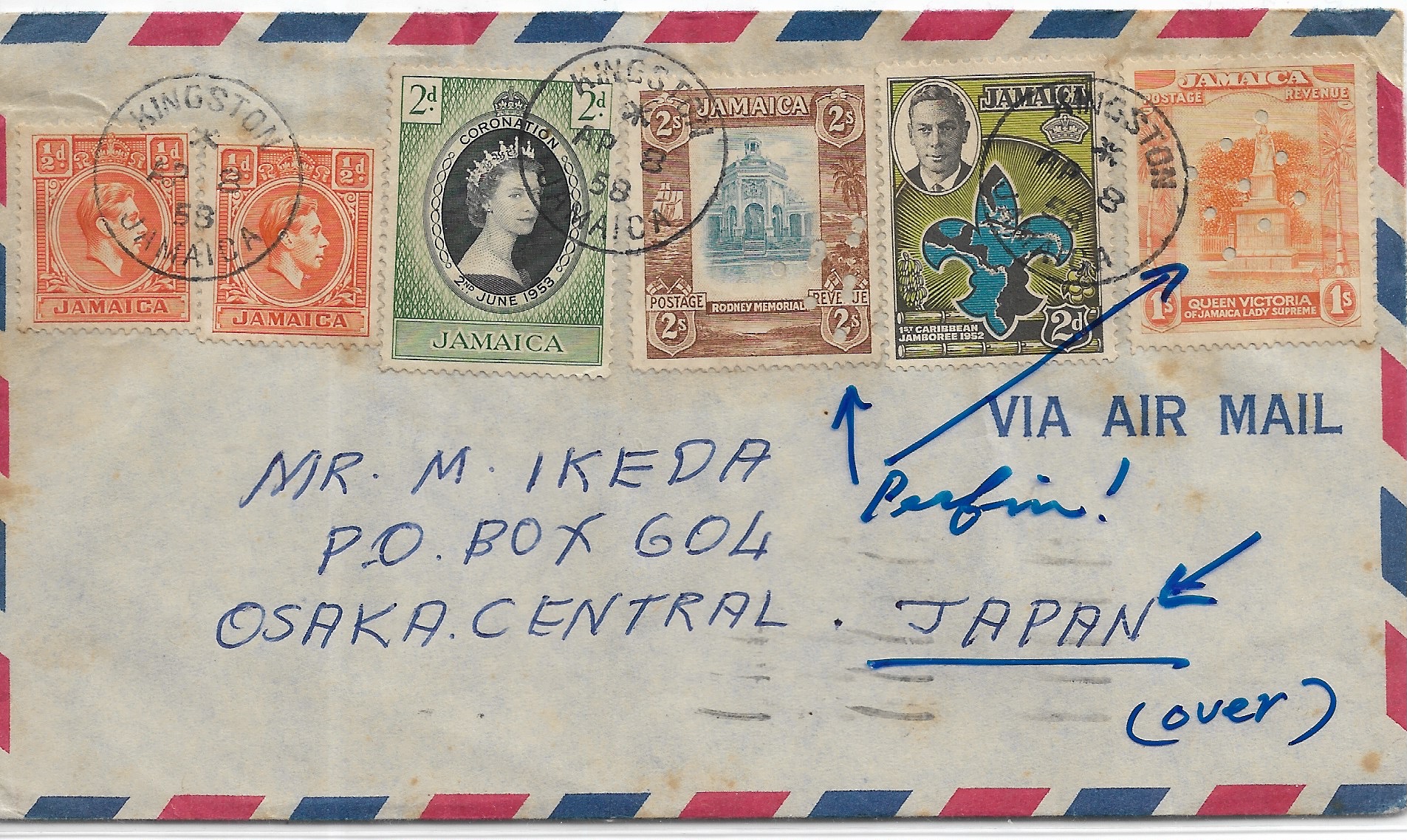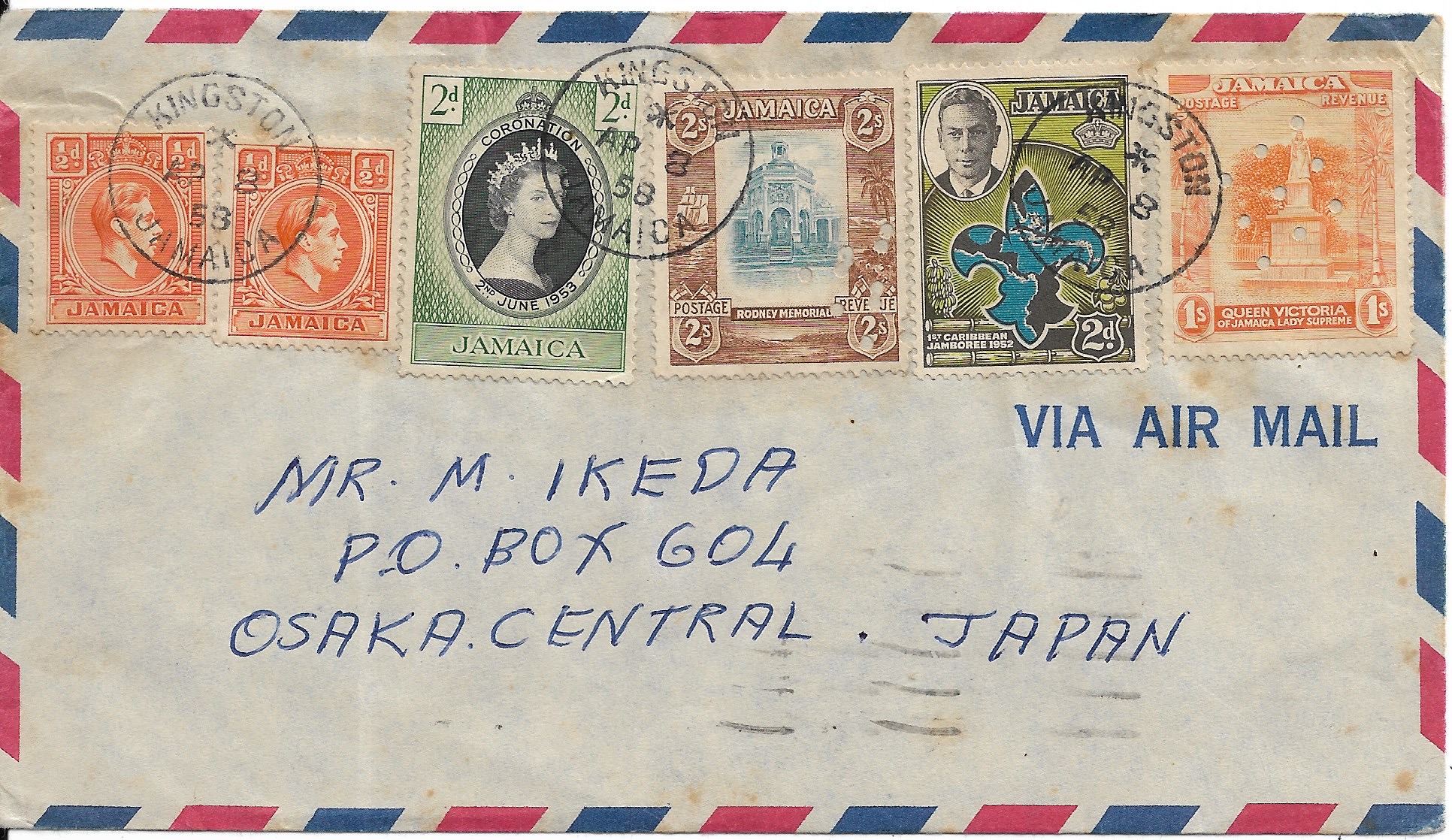 1958 Kingston, Jamaica to Osaka, Japan Airmail. back stamped Osaka. Added Wednesday, September 17, 2025