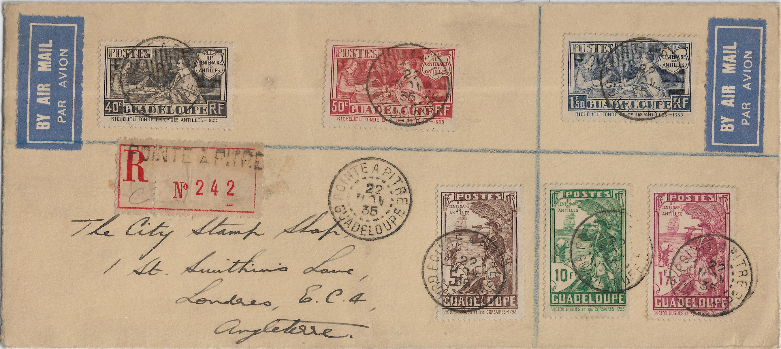 1935 Pointe A Pitre, Guadeloupe to London, England Registered Airmail. Added Wednesday, September 17, 2025