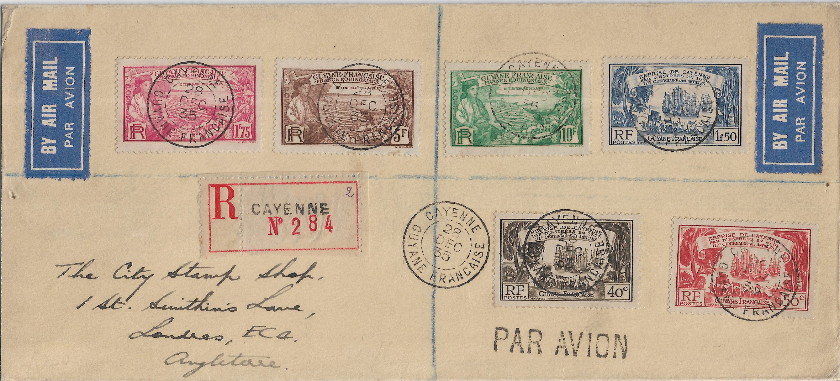 1935 Cayenne, French Guyana to London, England Registered Airmail. Added Wednesday, September 17, 2025