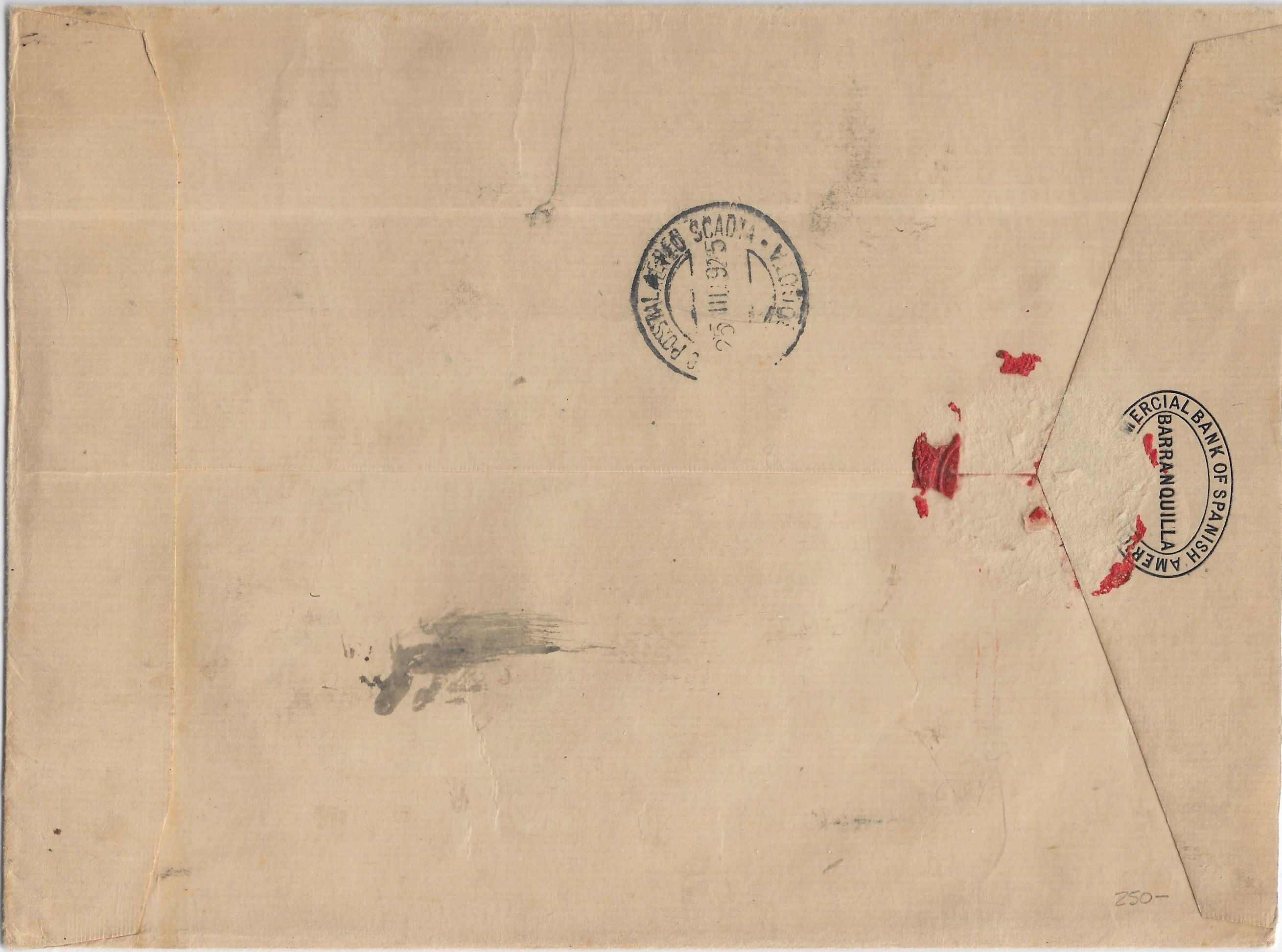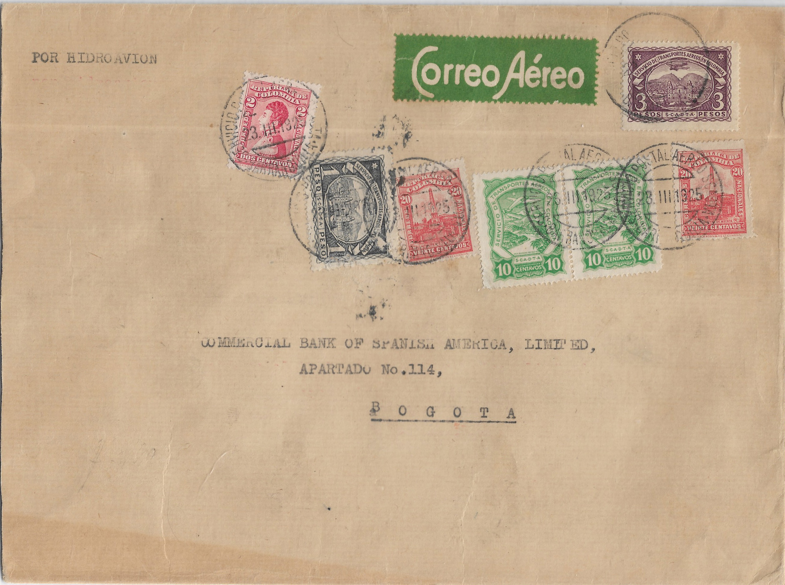 1925 SCADTA Airmail Cover to Bogota, Colombia w/1 & # Pesos stamps. back stamped Bogota. Added Sunday, September 14, 2025